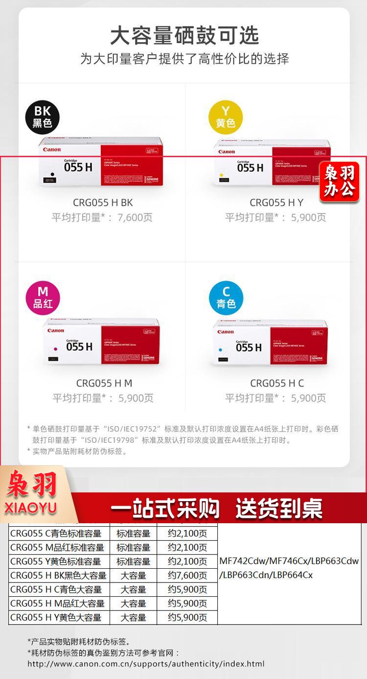 佳能(Canon)CRG055Y 黄色硒鼓(适用MF746Cx/MF742Cdw/LBP664Cx)
