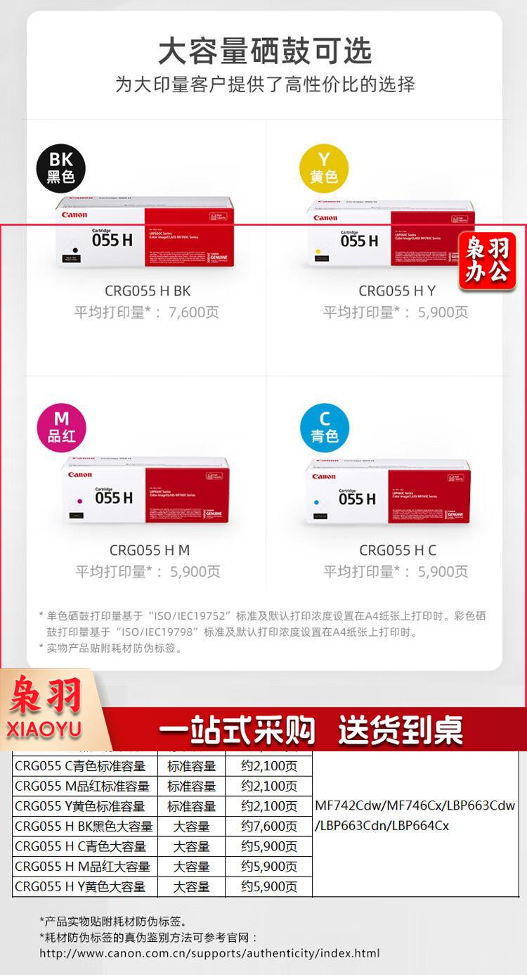 佳能(Canon)原装CRG-055红色硒鼓适用MF746Cx/742Cdw/LBP664Cx/663Cdw/663Cdn打印机粉盒(2100页)