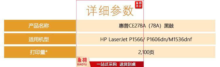 惠普(HP)CE278A 78A 原装黑色硒鼓(适用P1566 P1606dn M1536dnf打印机)约2100页