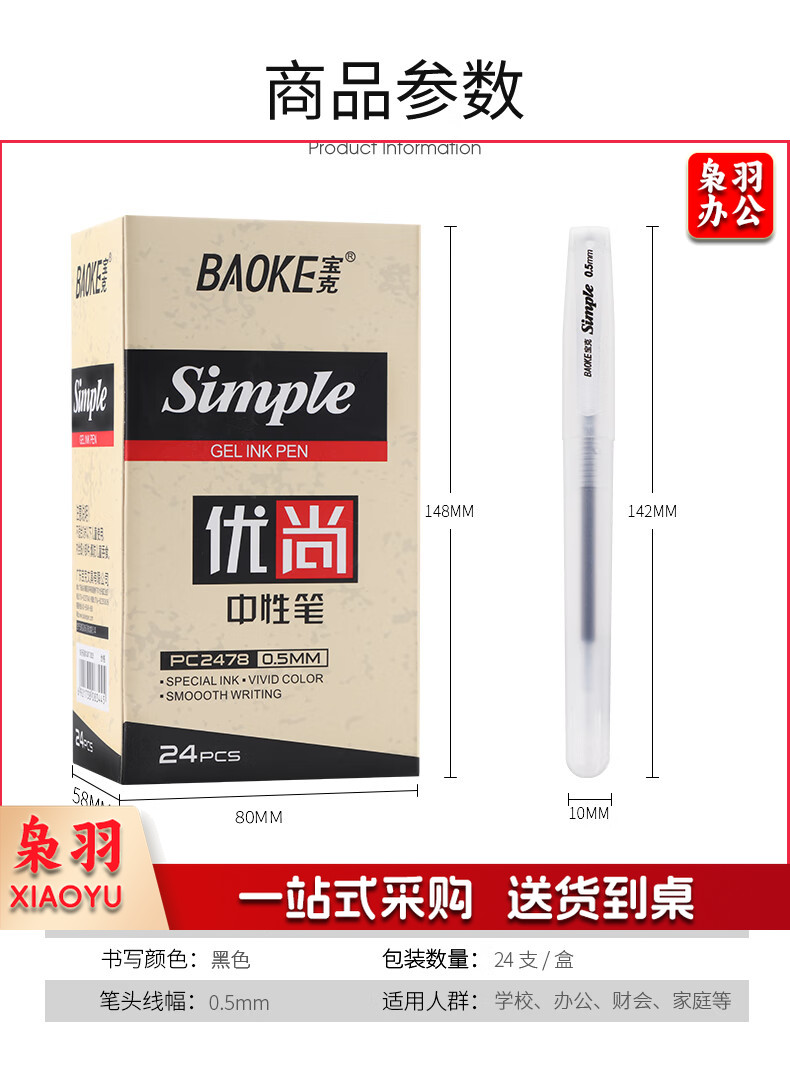 宝克(BAOKE)PC2478优尚中性笔办公签名笔水笔 0.5mm 黑色 24支/盒