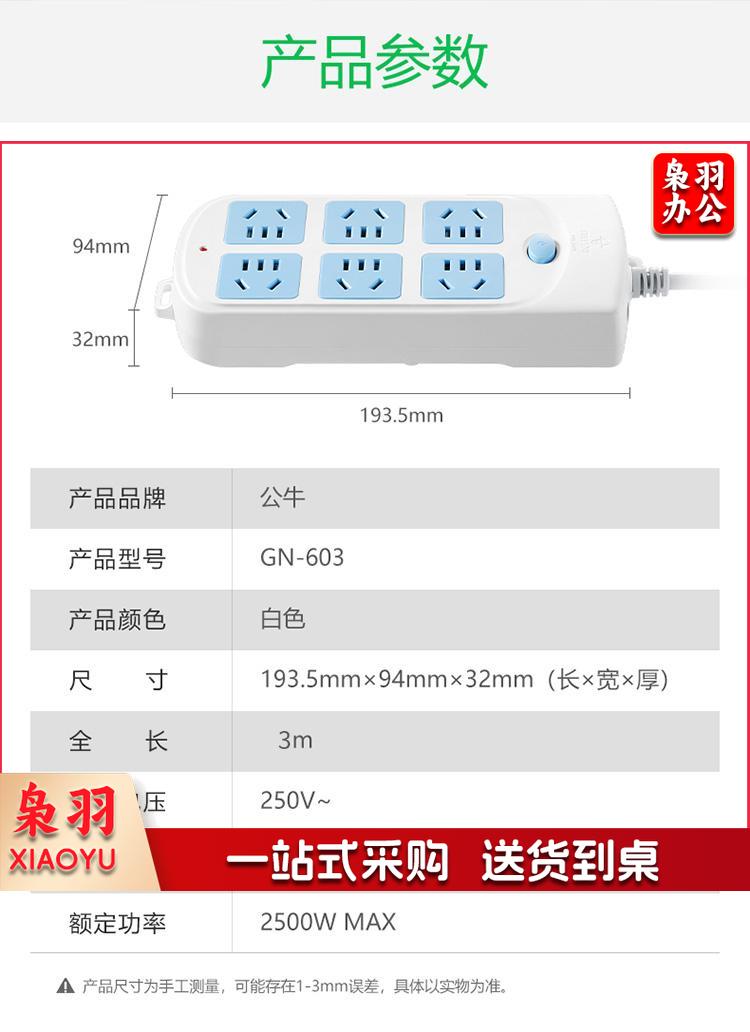 公牛(BULL)GN-603 新国标插座/插线板/插排/排插/接线板/拖线板 6位总控全长5米超功率保护