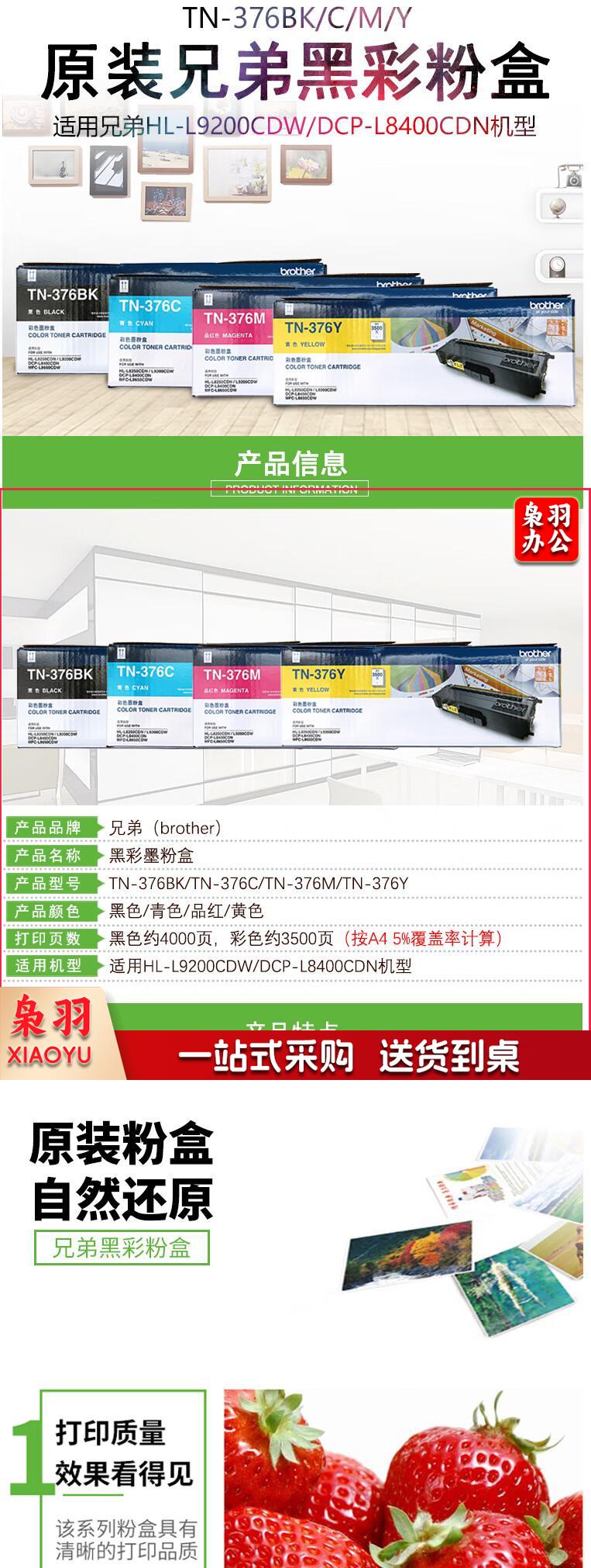 兄弟(brother)TN-376BK黑色粉盒HL-L9200CDW DCP-L8400CDN