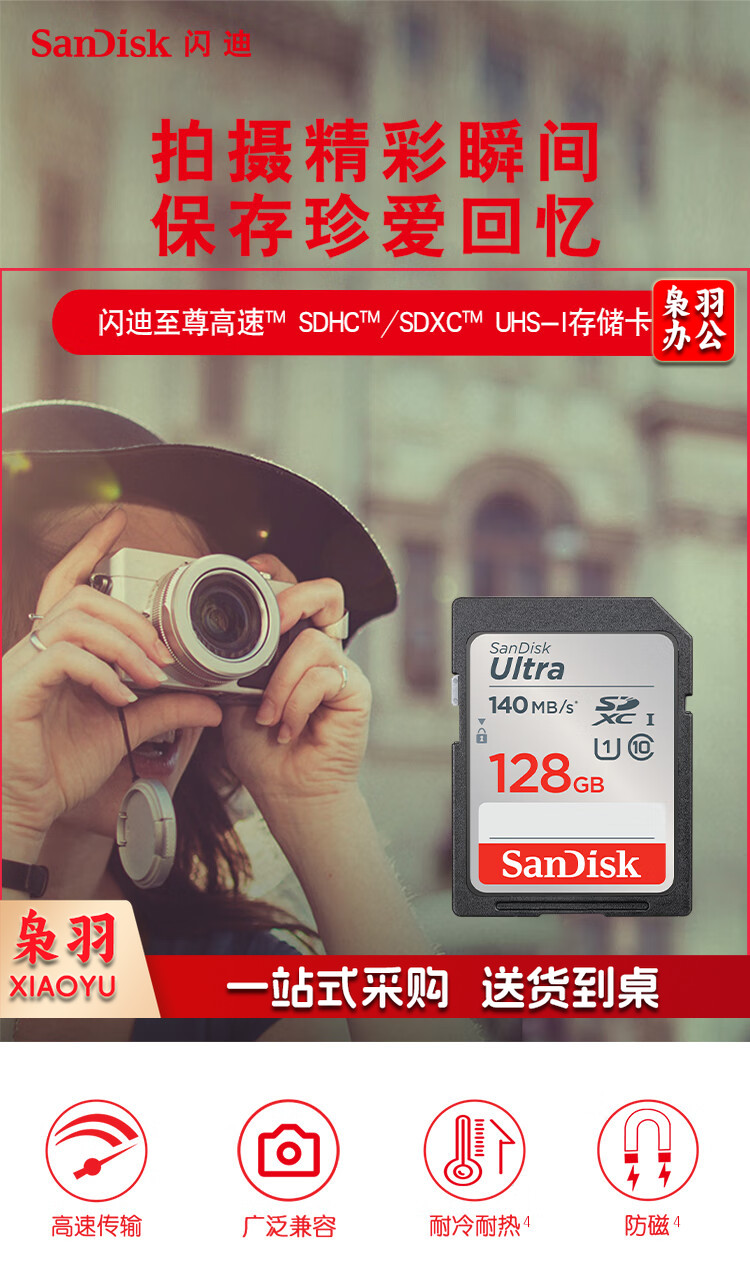 闪迪(SanDisk)128GB SD存储卡 C10 至尊高速版内存卡 读速140MB/s 捕捉全高清 数码相机理想伴侣