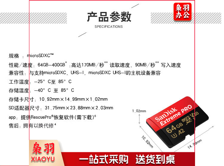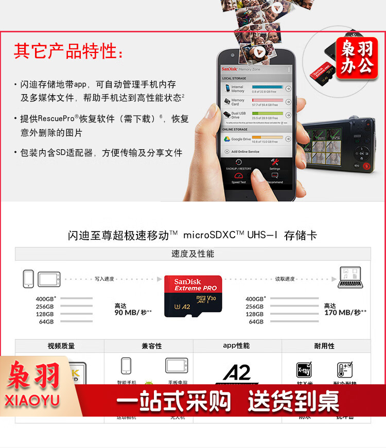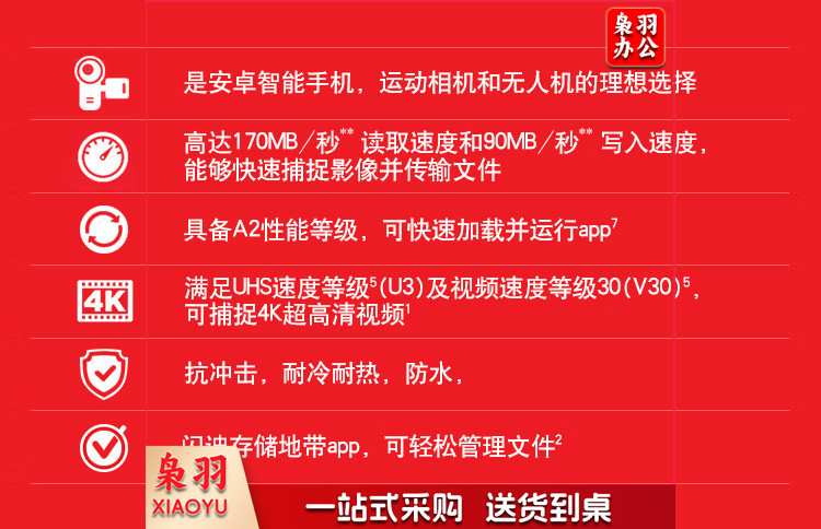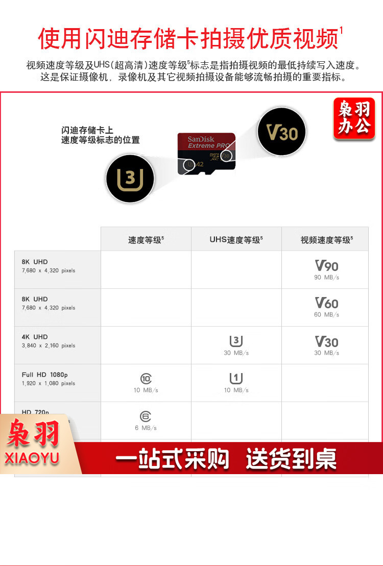 闪迪(SanDisk)64GB TF(MicroSD)存储卡 U3 C10 A2 V30 4K 至尊超极速移动版内存卡 读速170MB/s