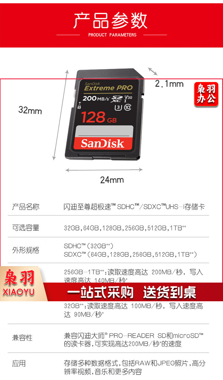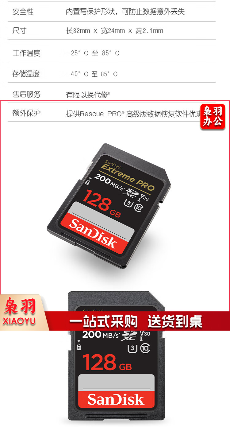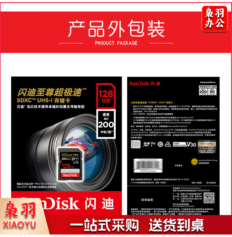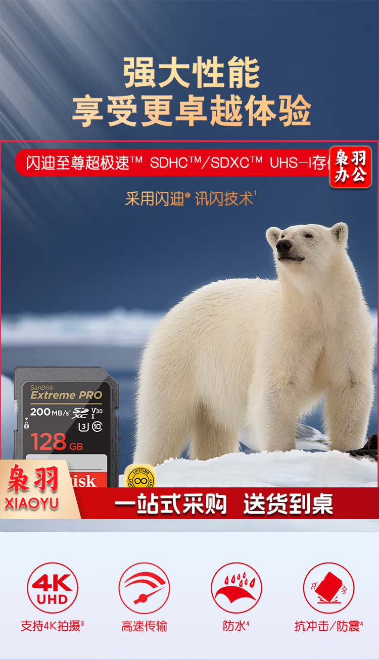 闪迪(SanDisk)128GB SD存储卡 U3 C10 V30 4K至尊超极速版数码相机内存卡 读速200MB/s 写速90MB/s