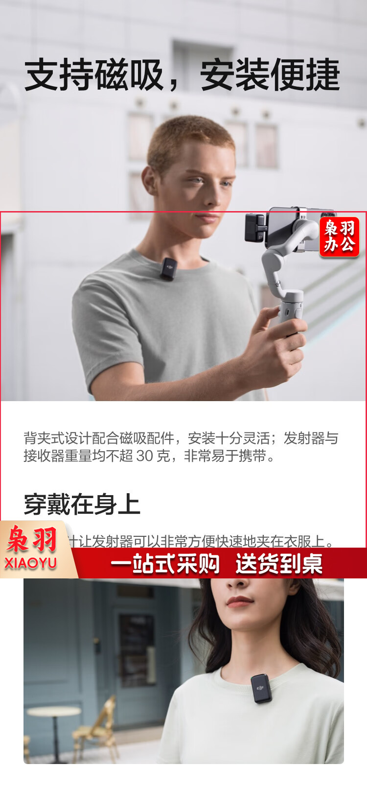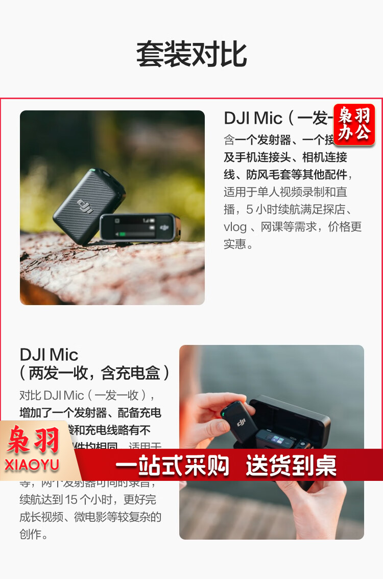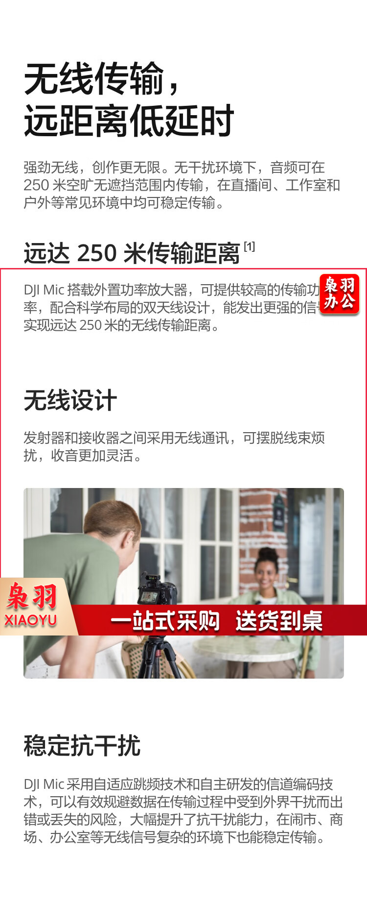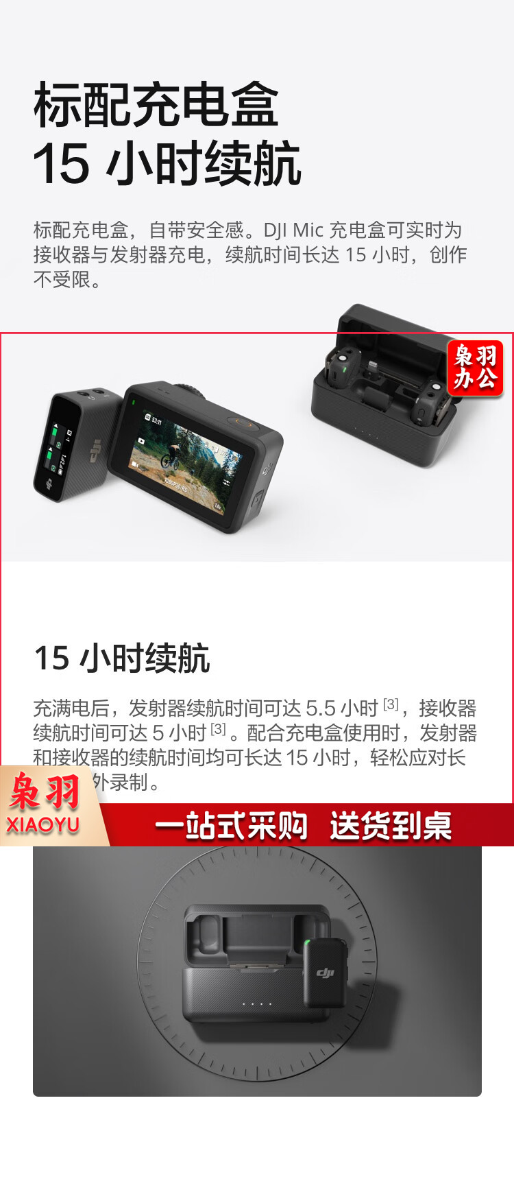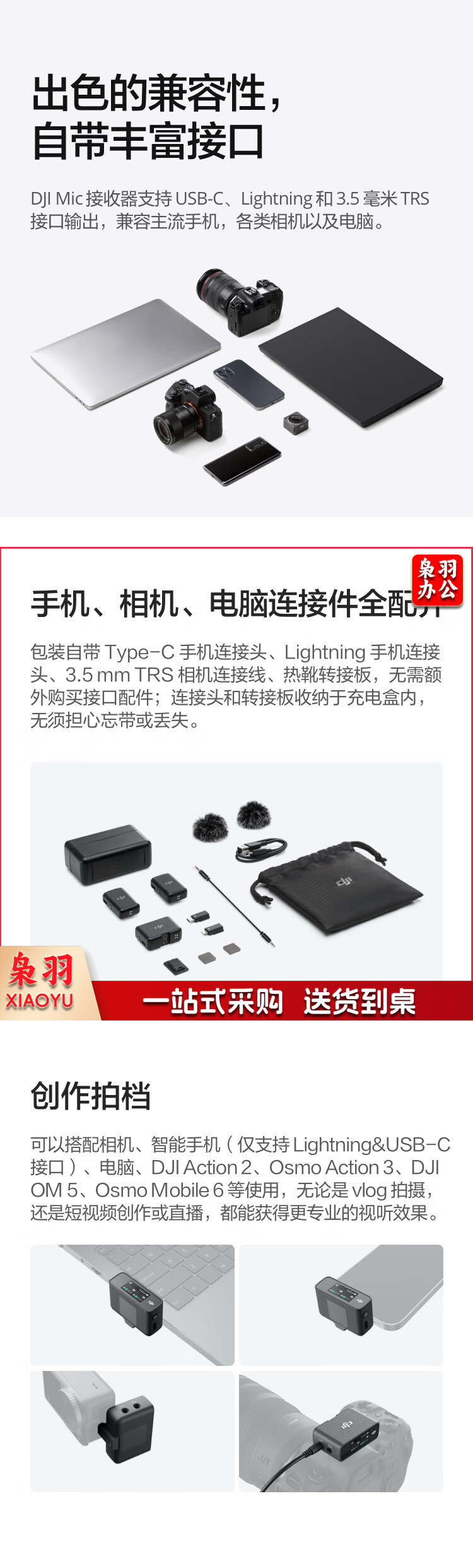大疆 DJI Mic 无线麦克风 一拖二无线领夹麦克风 手机相机采访vlog直播录音收音麦