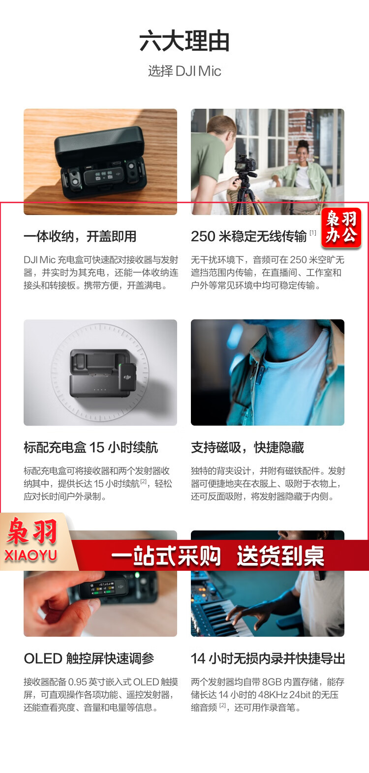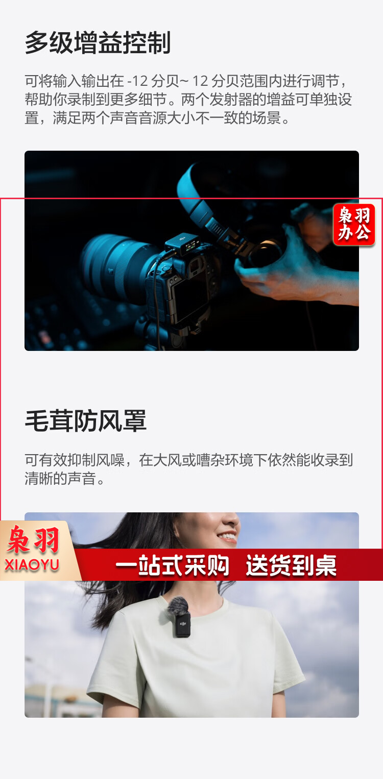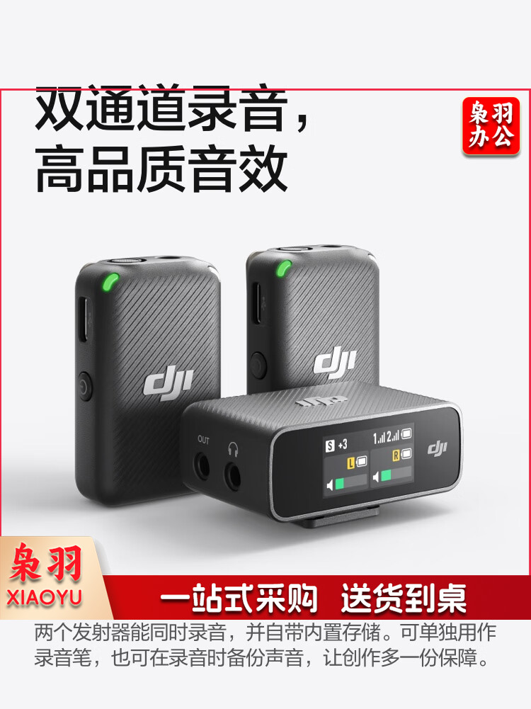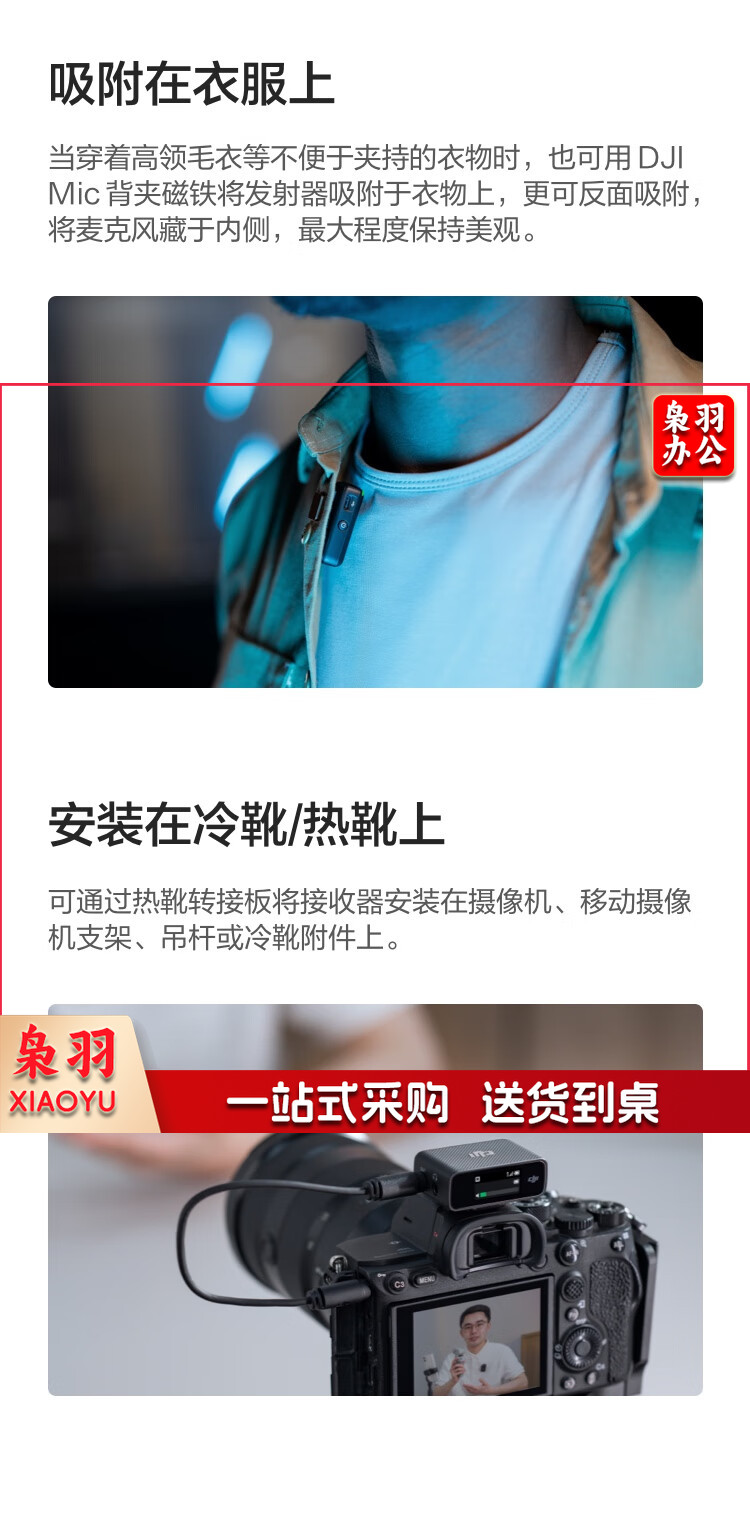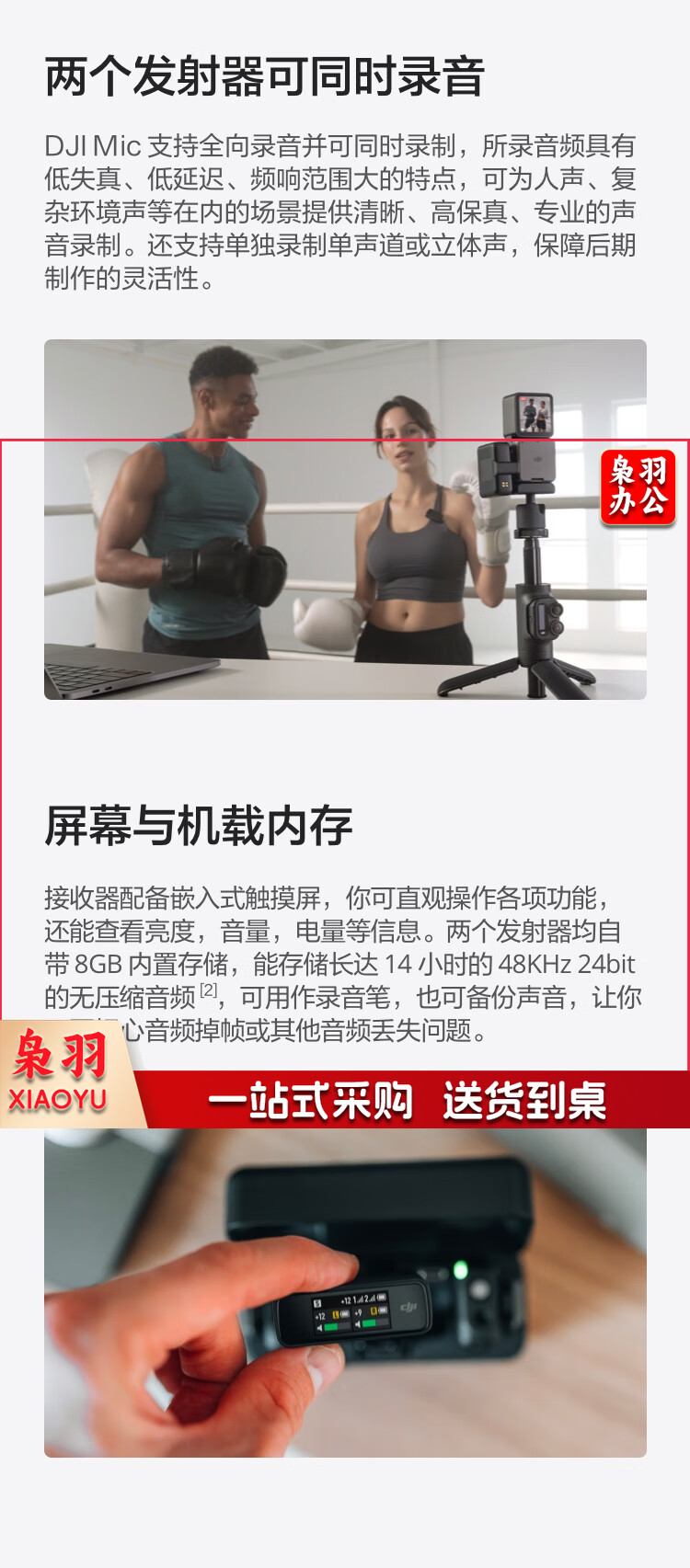 大疆 DJI Mic 无线麦克风 一拖二无线领夹麦克风 手机相机采访vlog直播录音收音麦