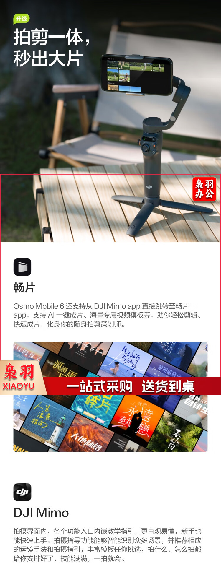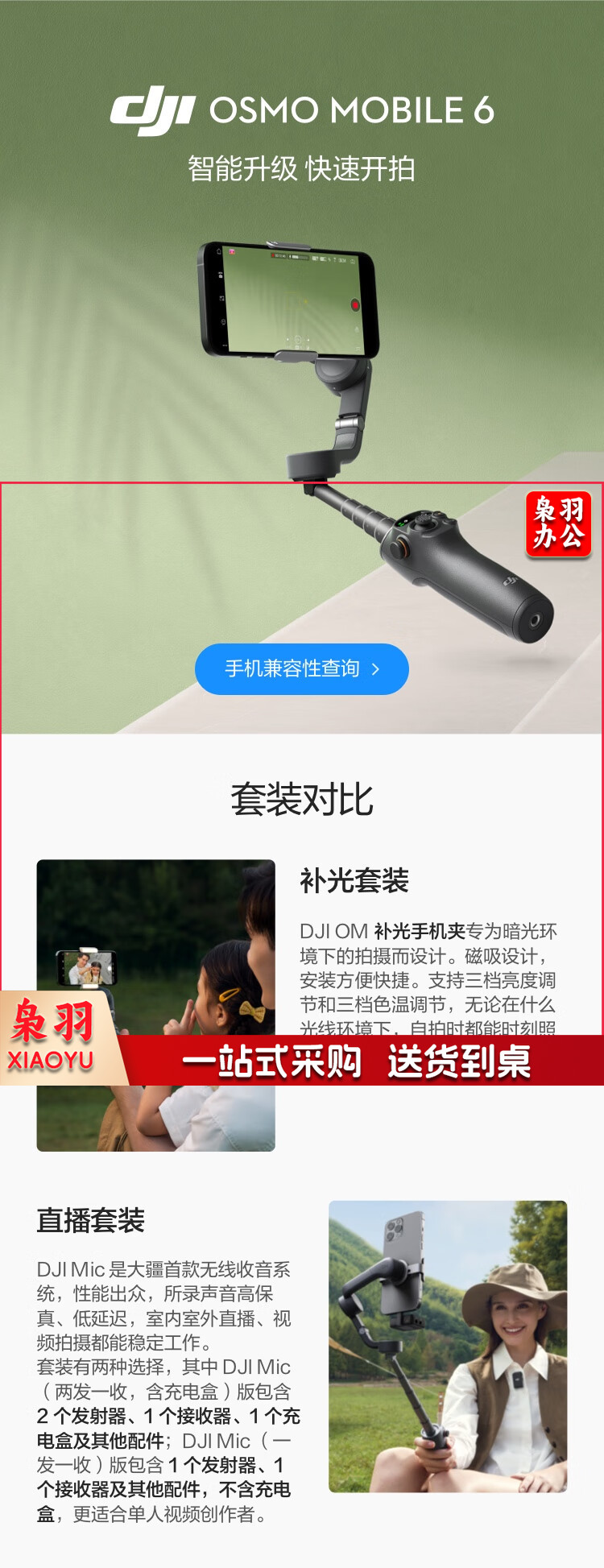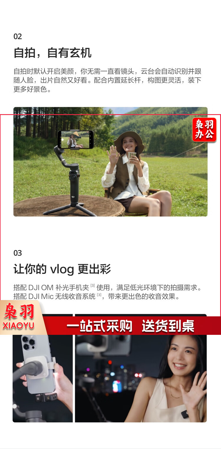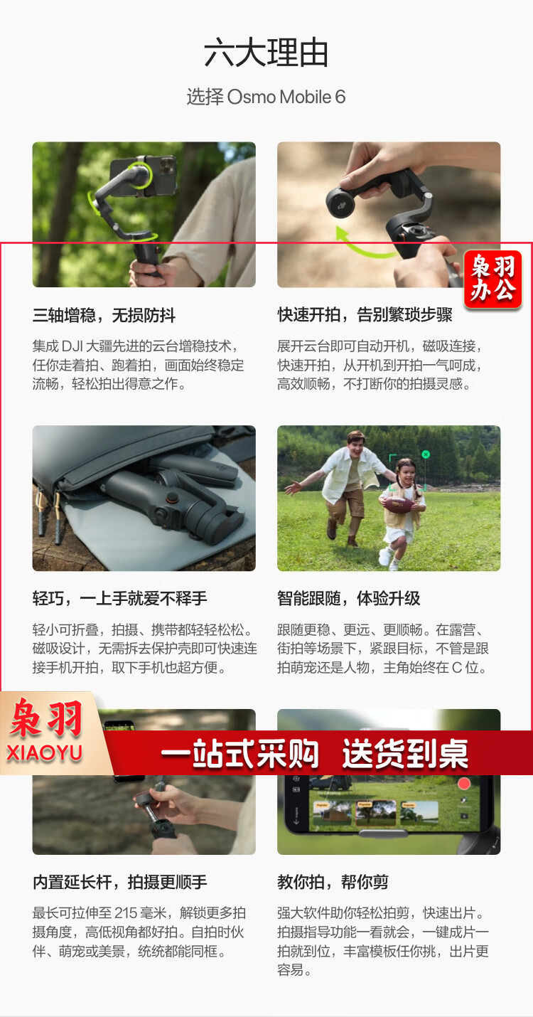 大疆 DJI Osmo Mobile 6 OM手机云台稳定器 可折叠可伸缩自拍杆 智能跟随三轴增稳防抖vlog拍摄手持稳定器