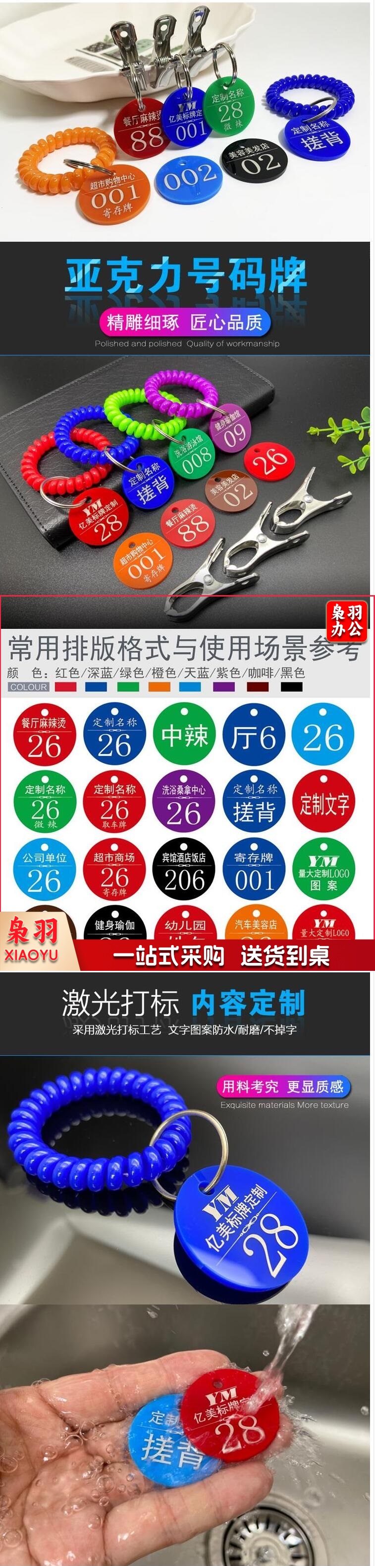 手牌号码牌数字编号牌 亚克力餐牌 叫号牌 含:2牌+2圈+1夹+1手环 (最低起定量为50套)