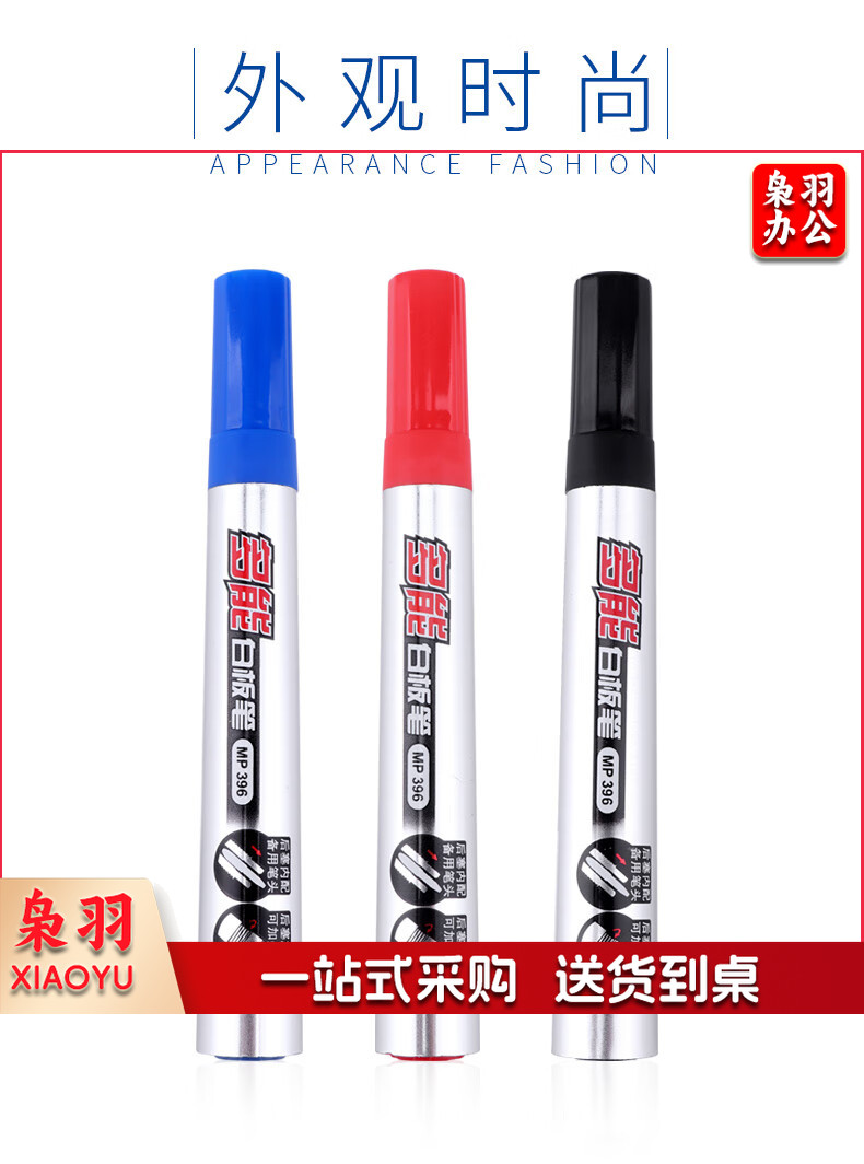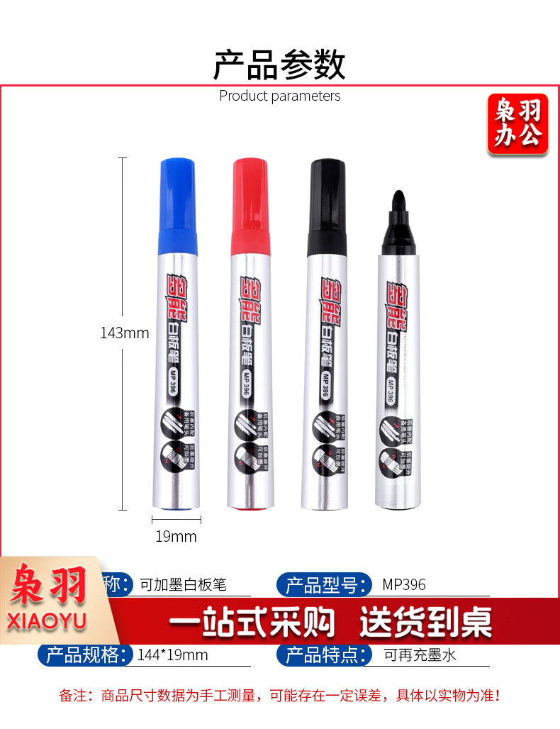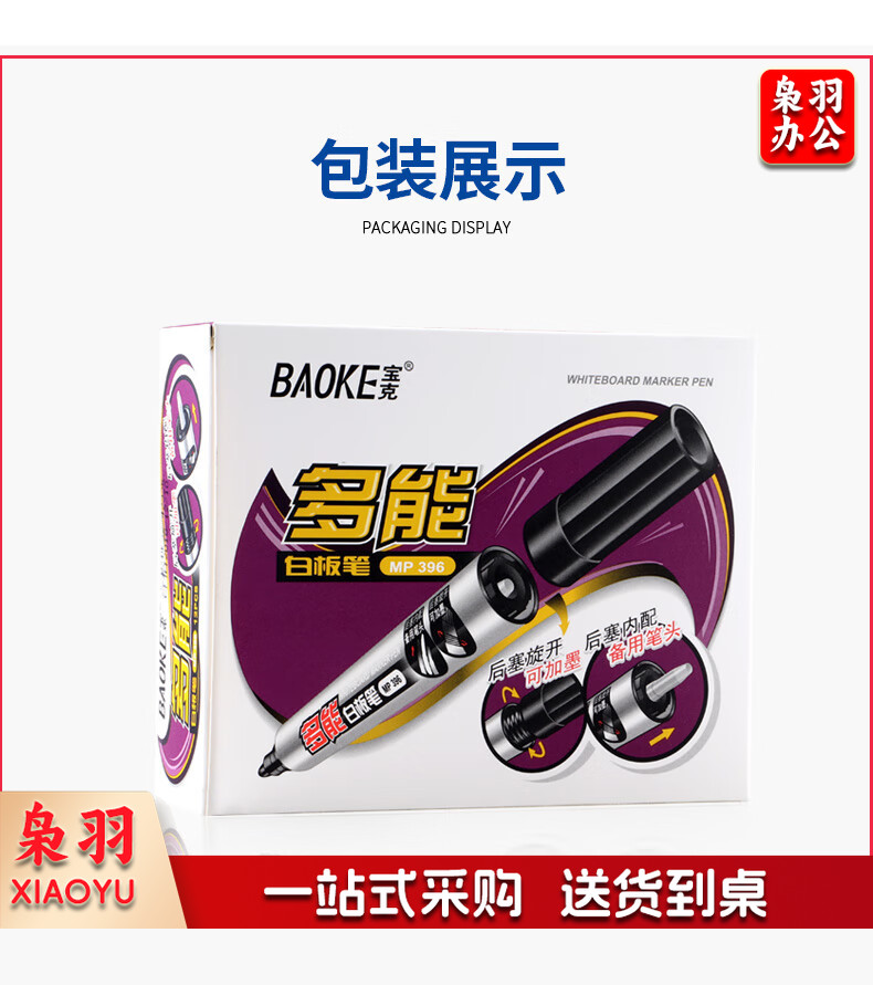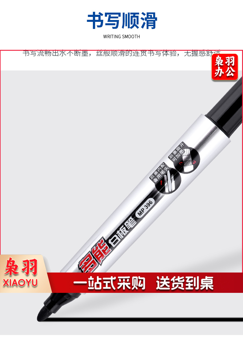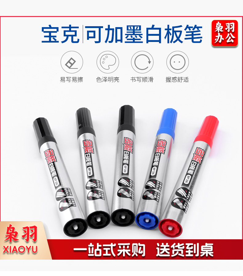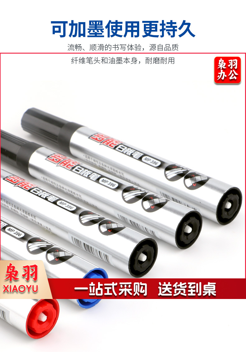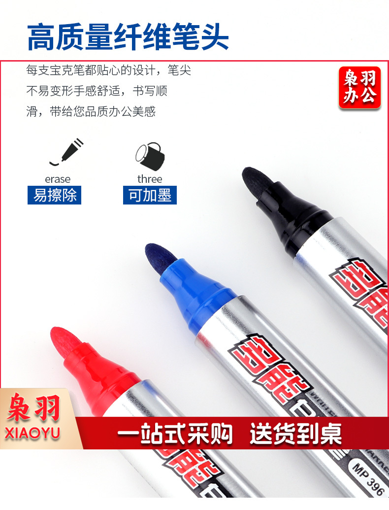 宝克(BAOKE)MP396 可加墨白板笔 可擦易擦自带备用笔头彩色商务办公会议儿童教学可擦笔涂鸦绘画笔文具 红色 12支/盒 实惠装