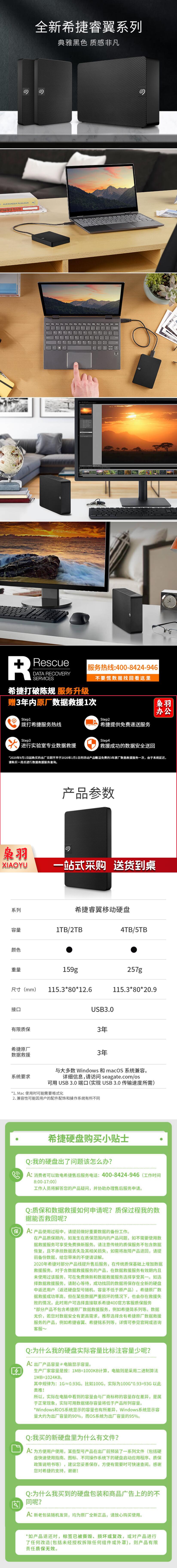 希捷(Seagate)移动硬盘5TB/5T USB3.0 睿翼 2.5英寸 STKM5000400 黑色便携商务 jcyd-202110111522