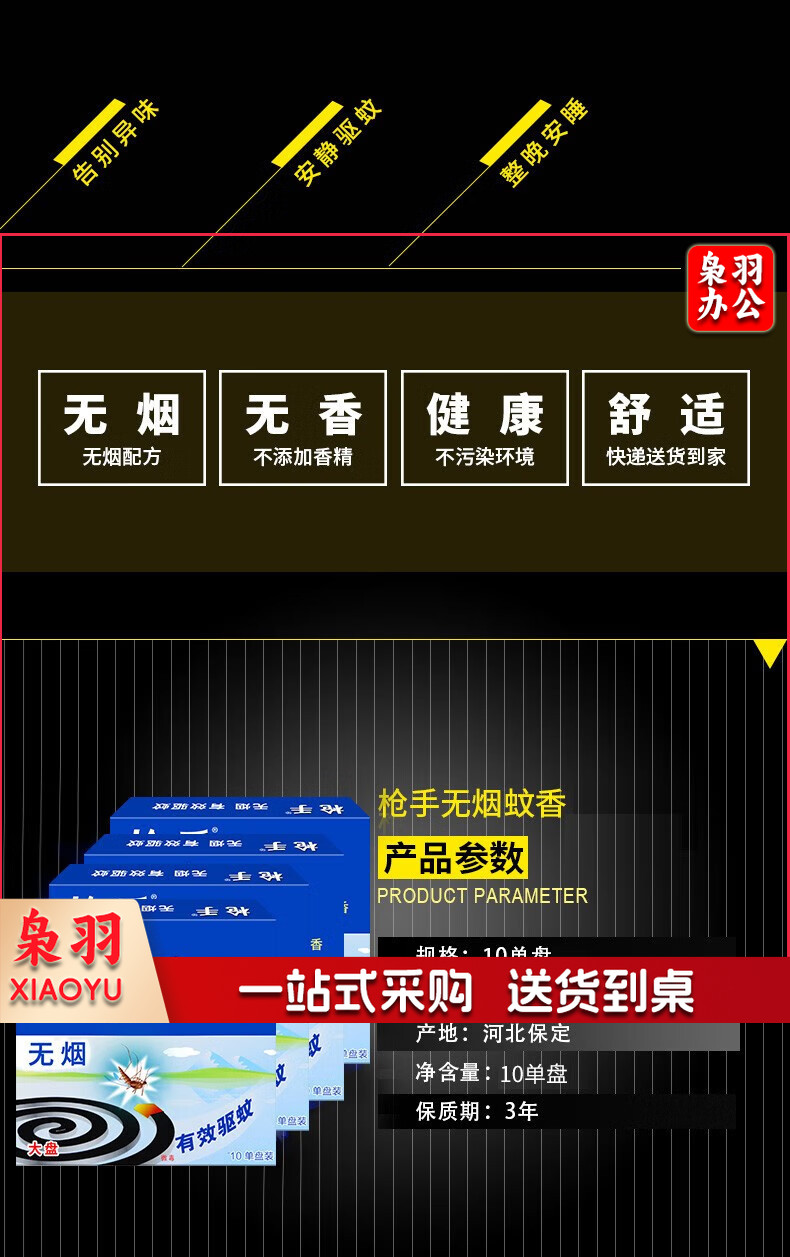 枪手蚊香盘家用室内强力灭蚊香接灰盘托架无烟蚊香无香蚊香10单圈*4盒