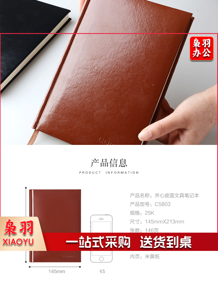 齐心(COMIX)皮面文具笔记本子/记事本/日记本 25K/146张 棕色 C5803