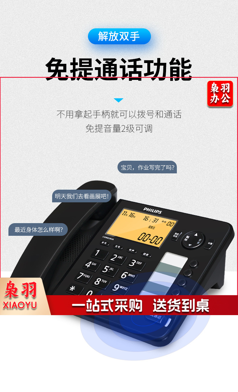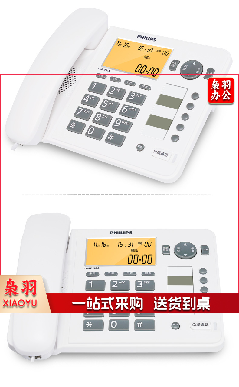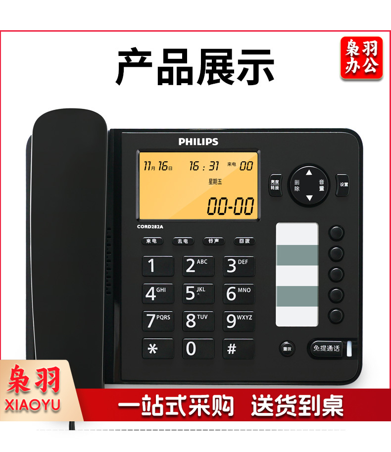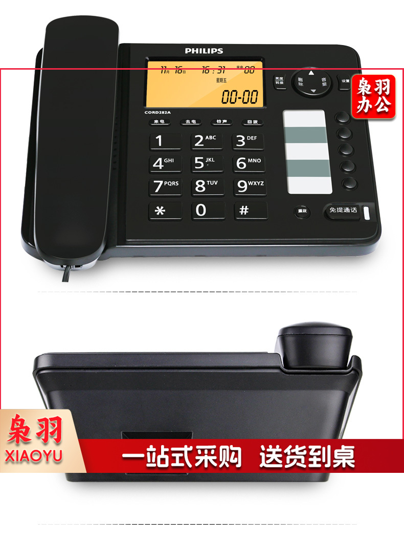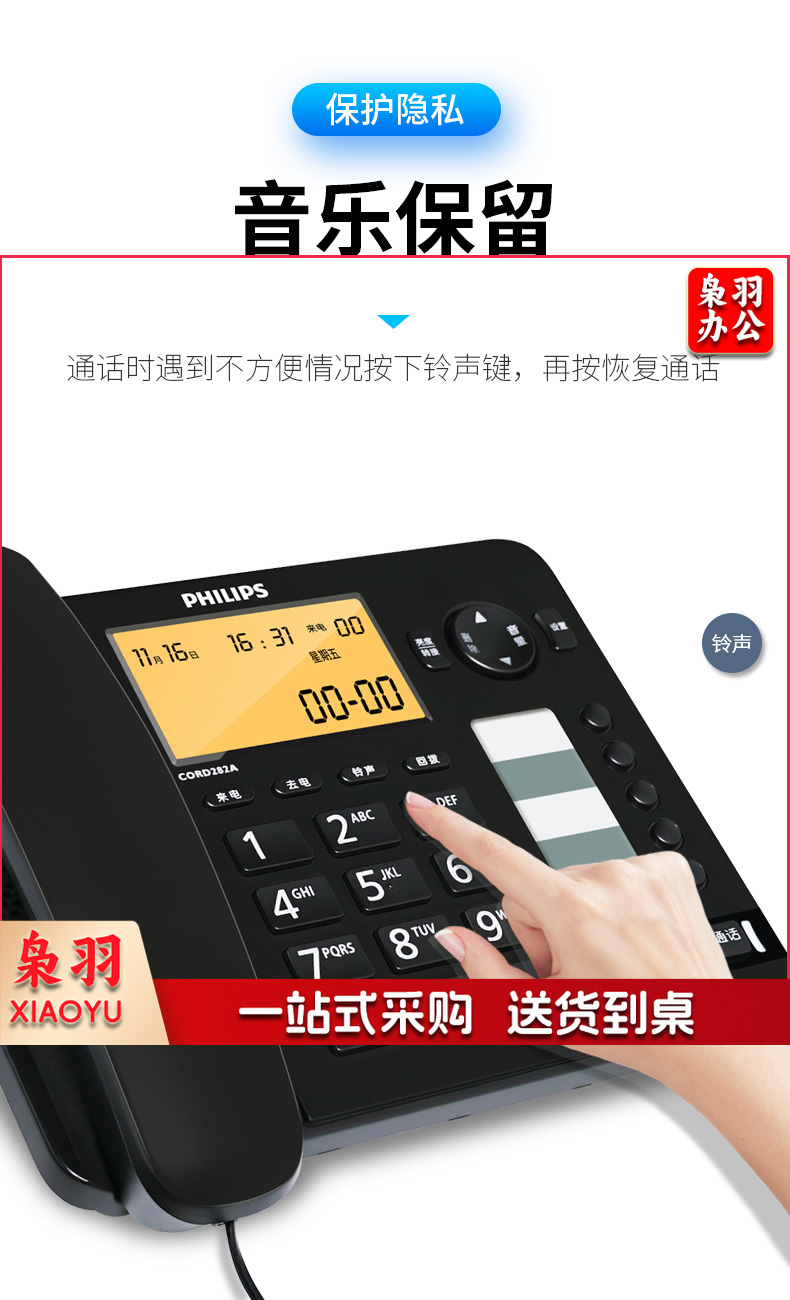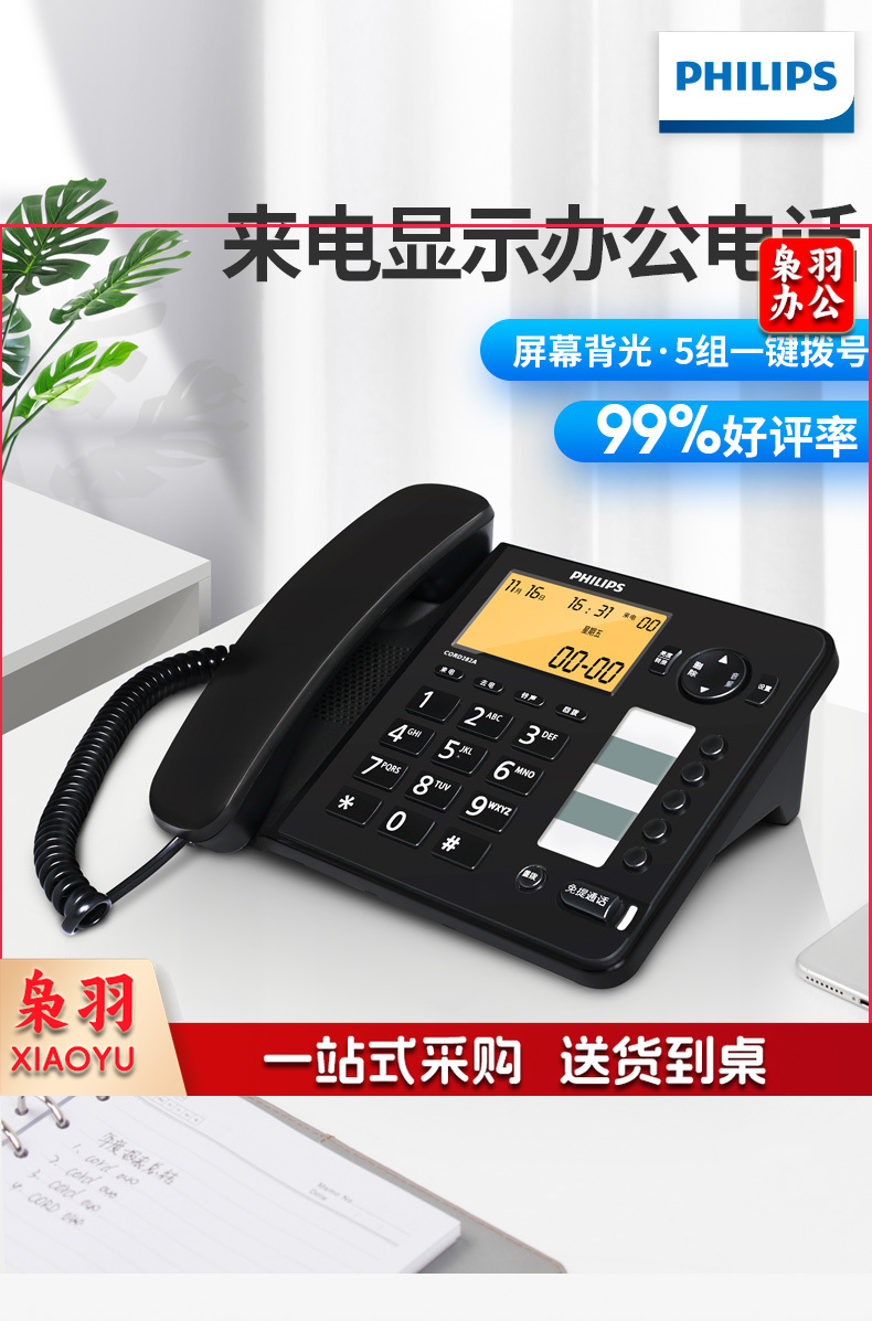 飞利浦(PHILIPS)电话机座机 屏幕橙色背光 CORD282A黑色
