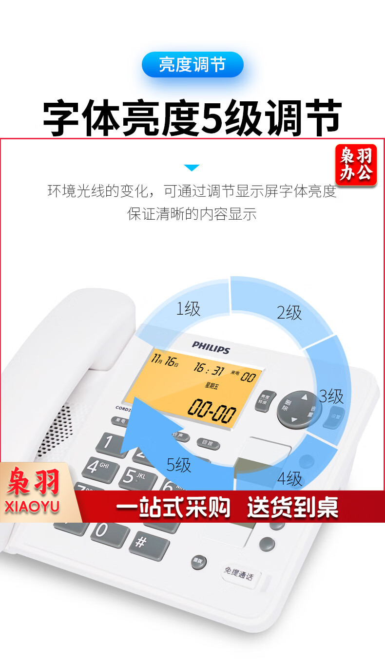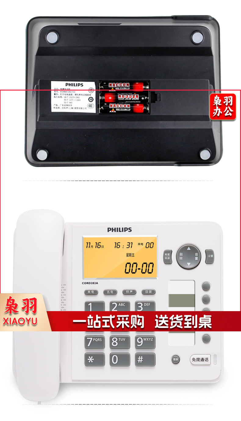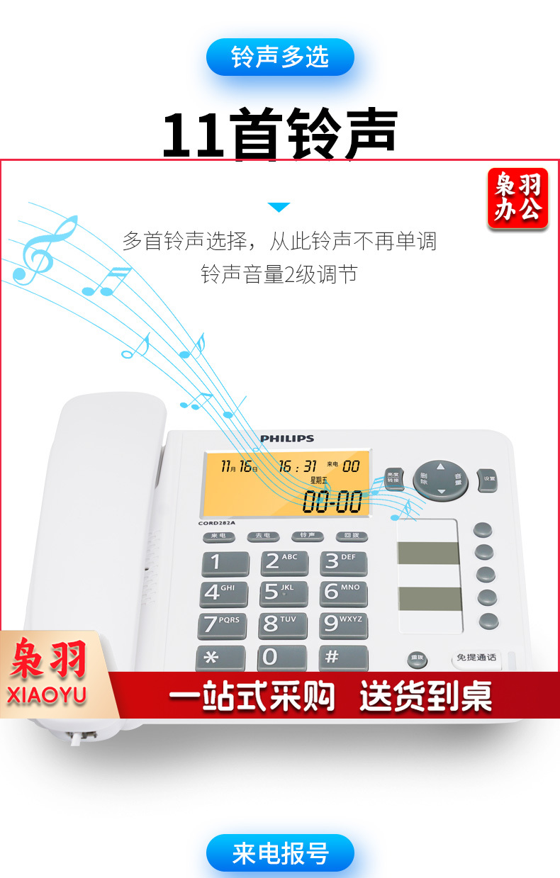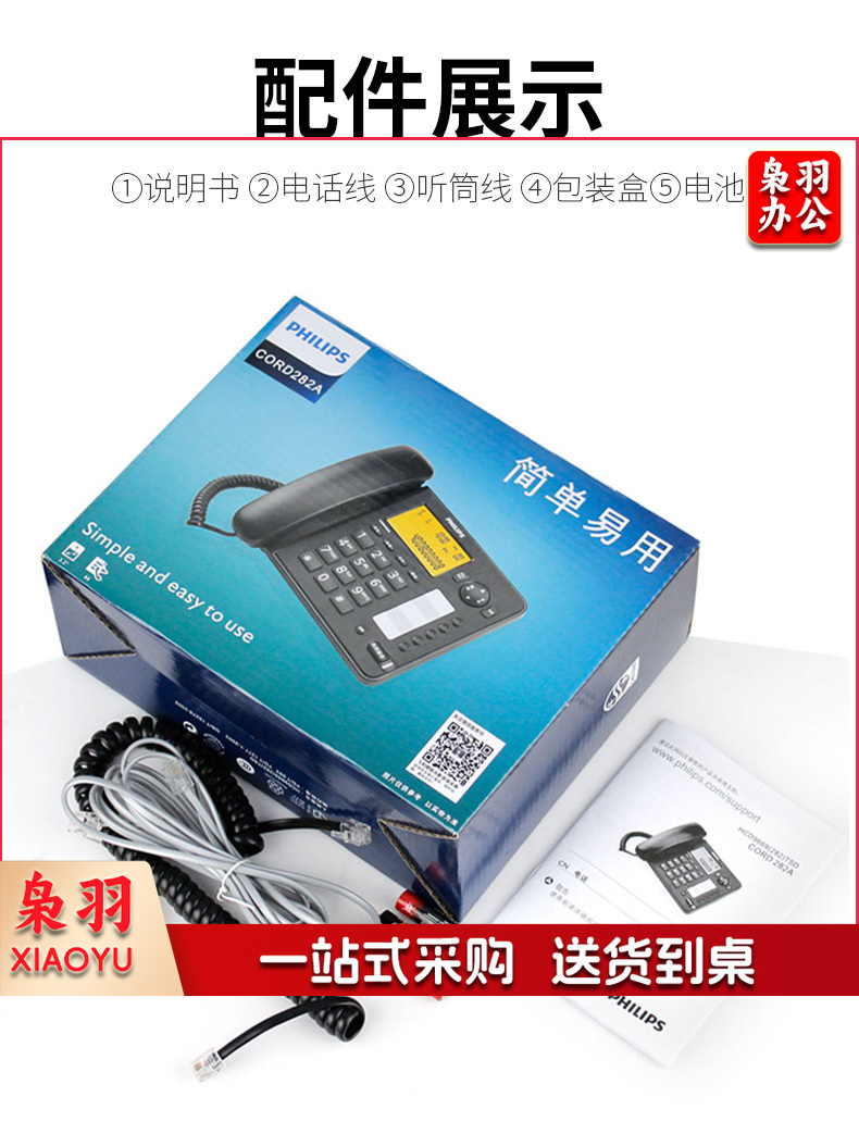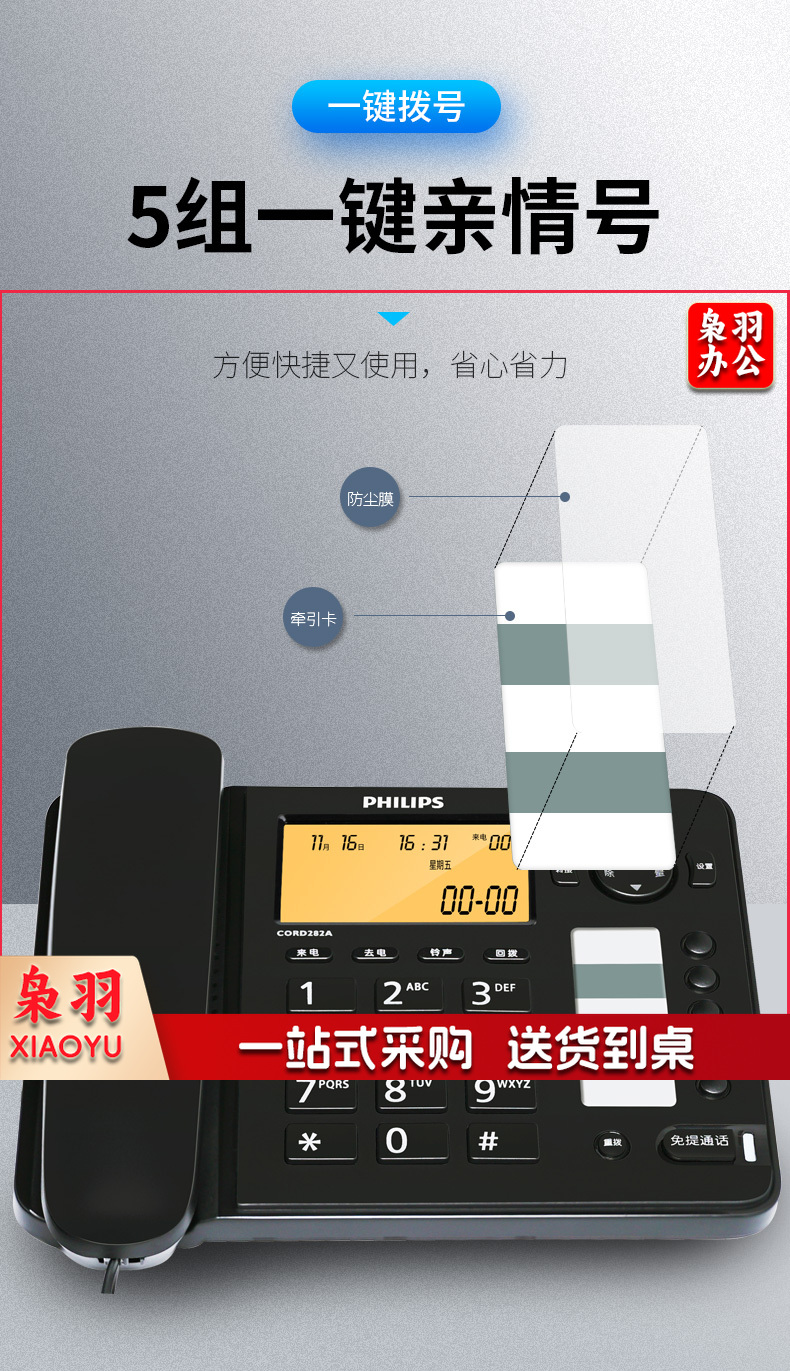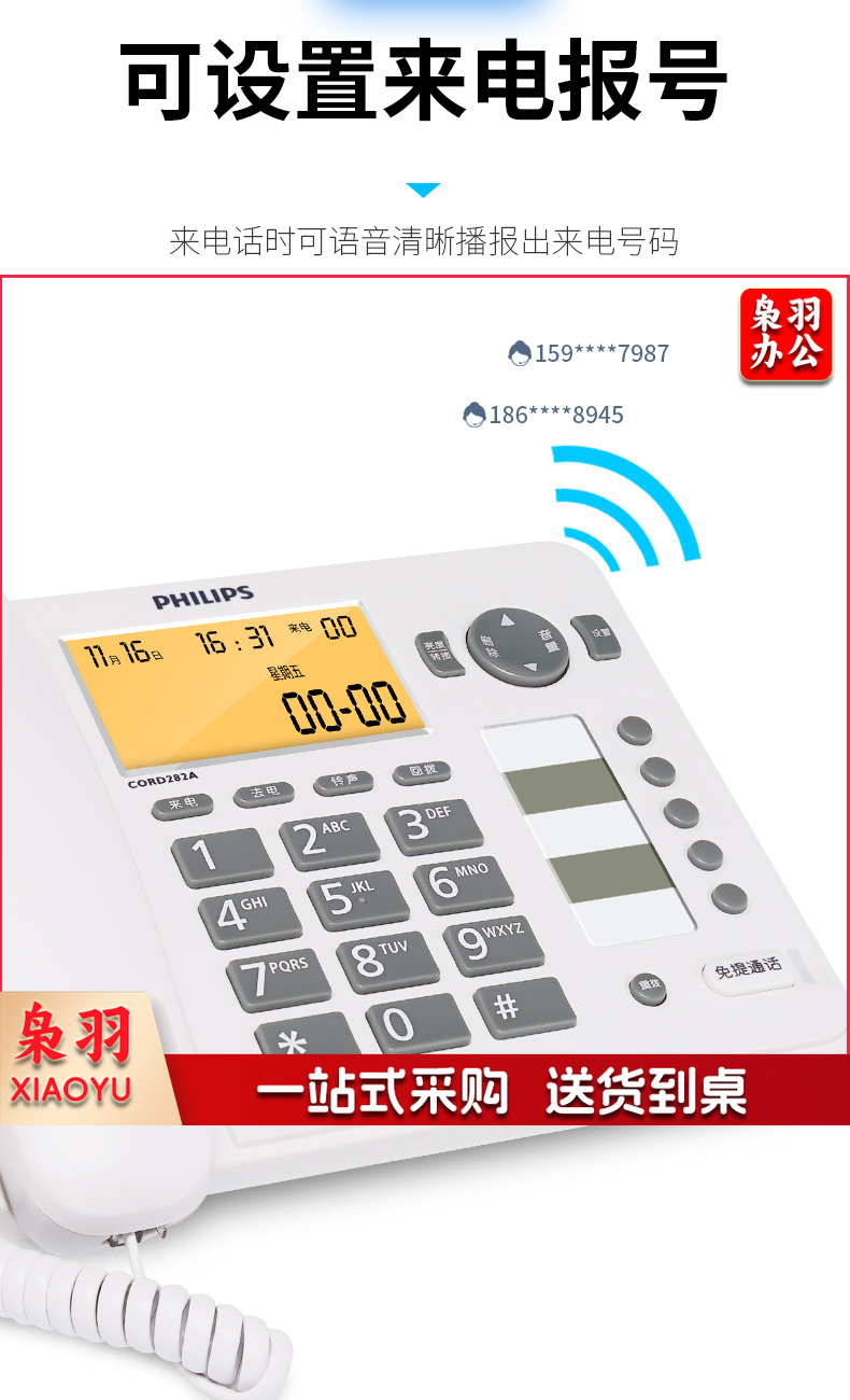 飞利浦(PHILIPS)电话机座机 屏幕橙色背光 CORD282A黑色