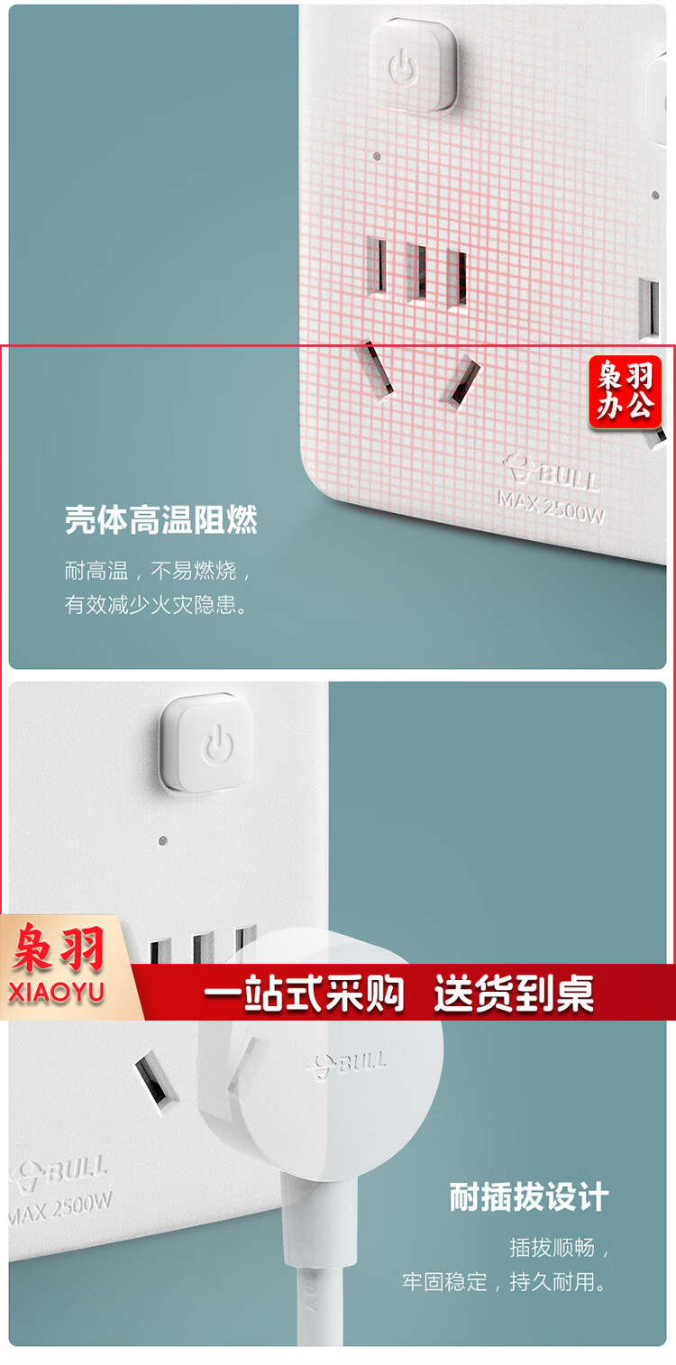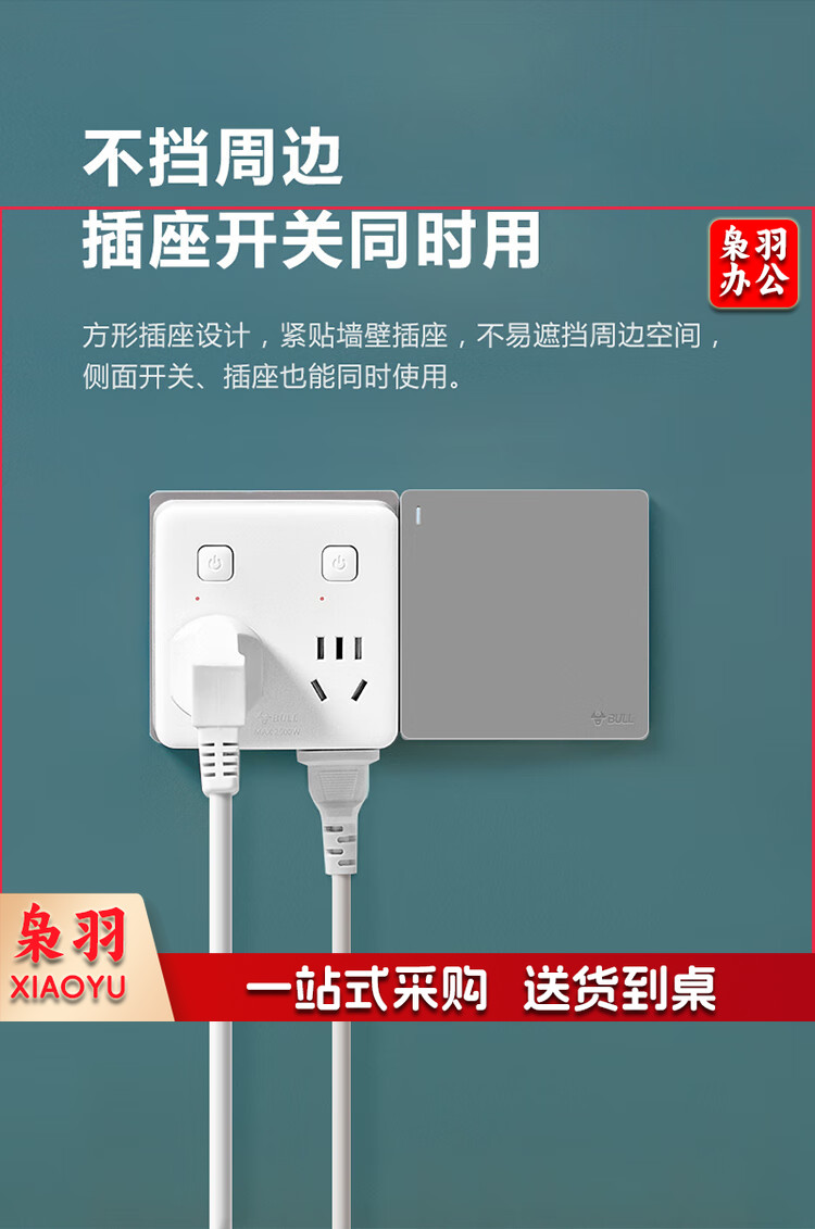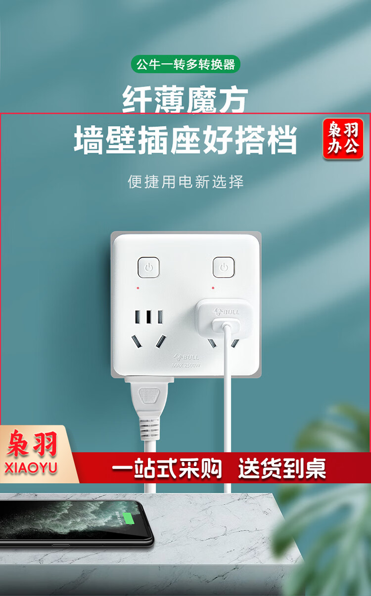 公牛 86型转换插头/插座/转换插座/电源转换器 一转四转换插头 适用于卧室、厨房 4位分控 GN-93223