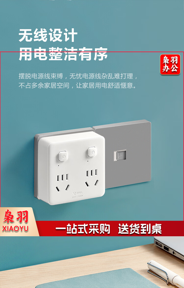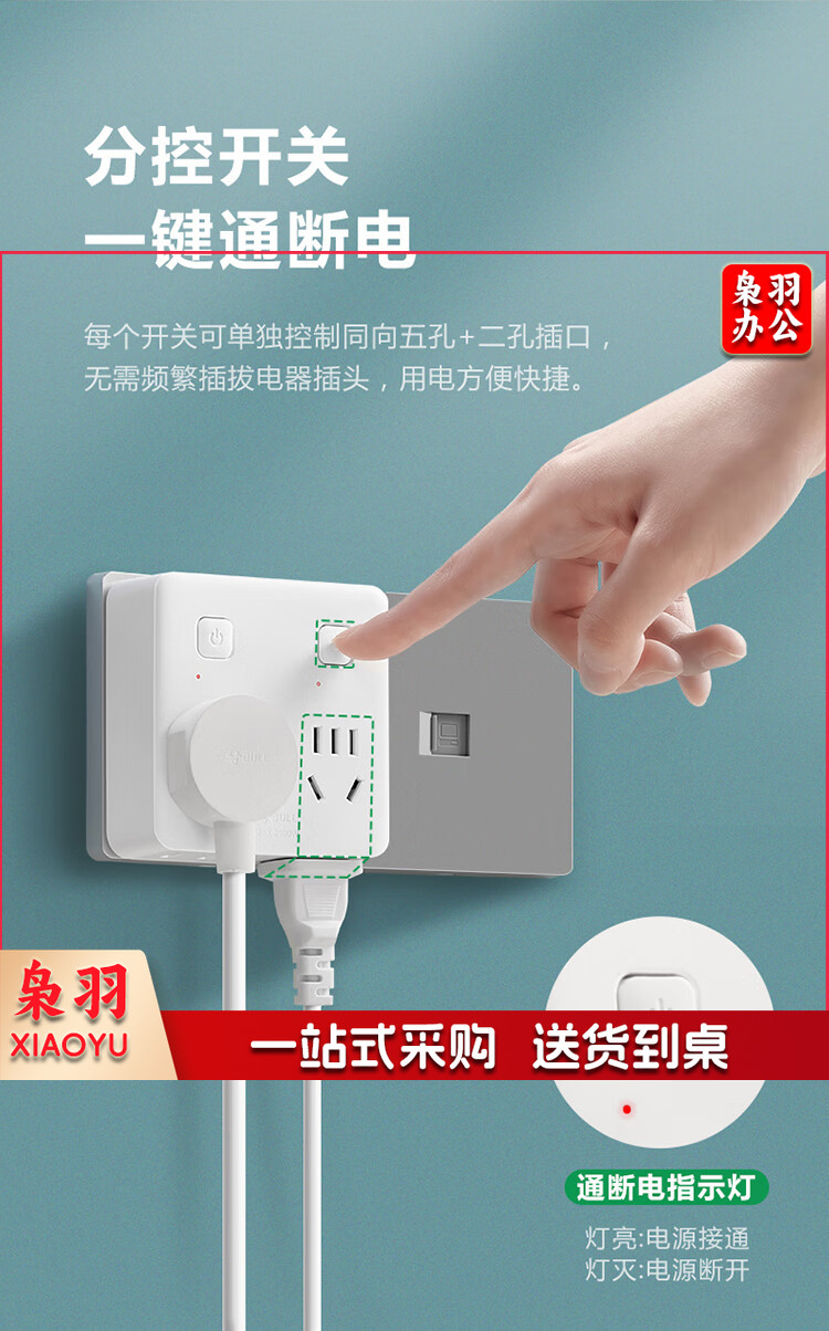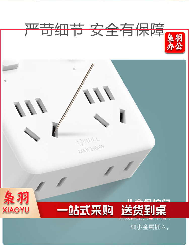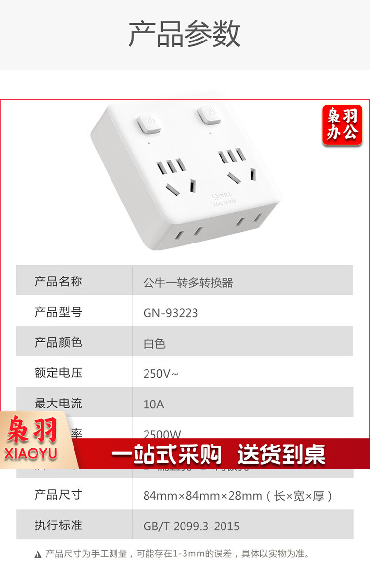 公牛 86型转换插头/插座/转换插座/电源转换器 一转四转换插头 适用于卧室、厨房 4位分控 GN-93223