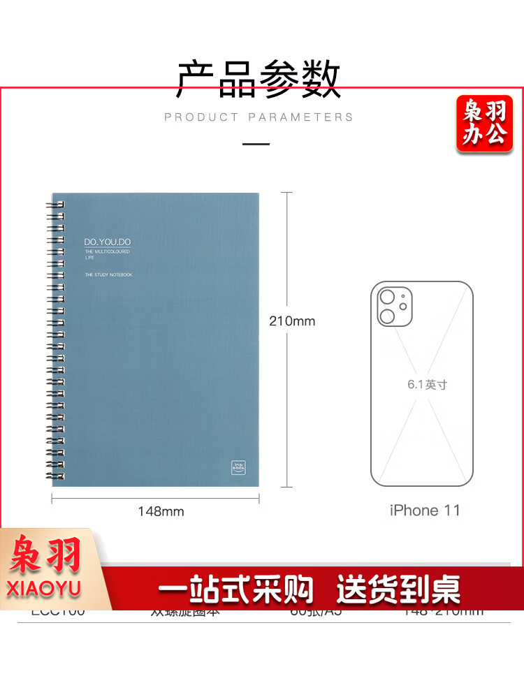 齐心(Comix)A5/60张线圈本纸面笔记本子/日记本/记事本/作业本 4本套装 ECC100