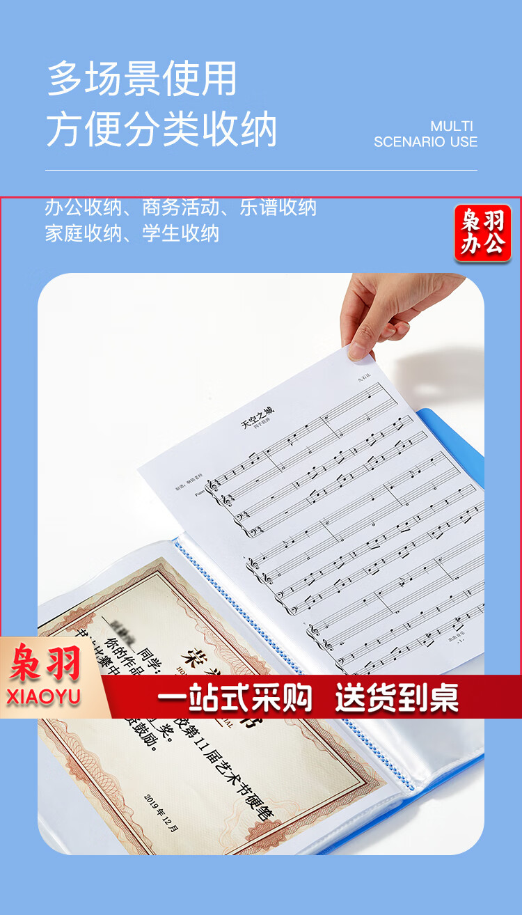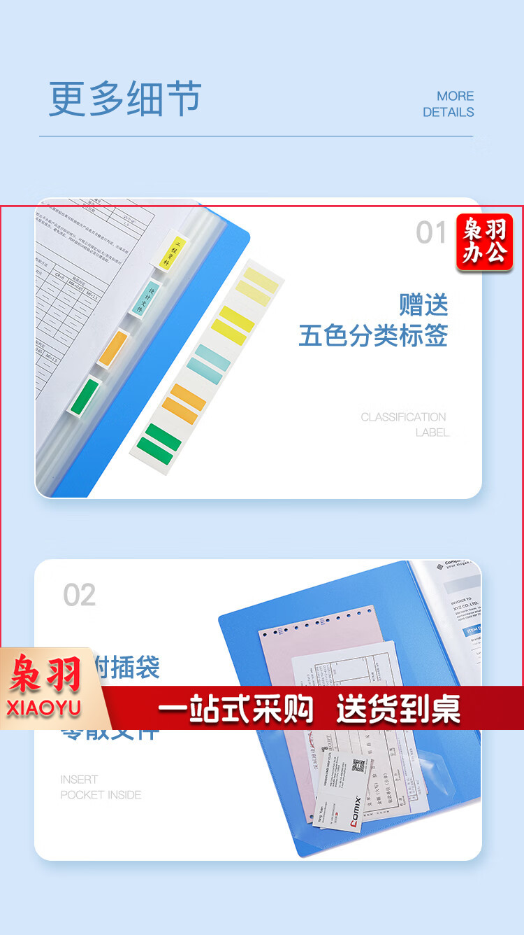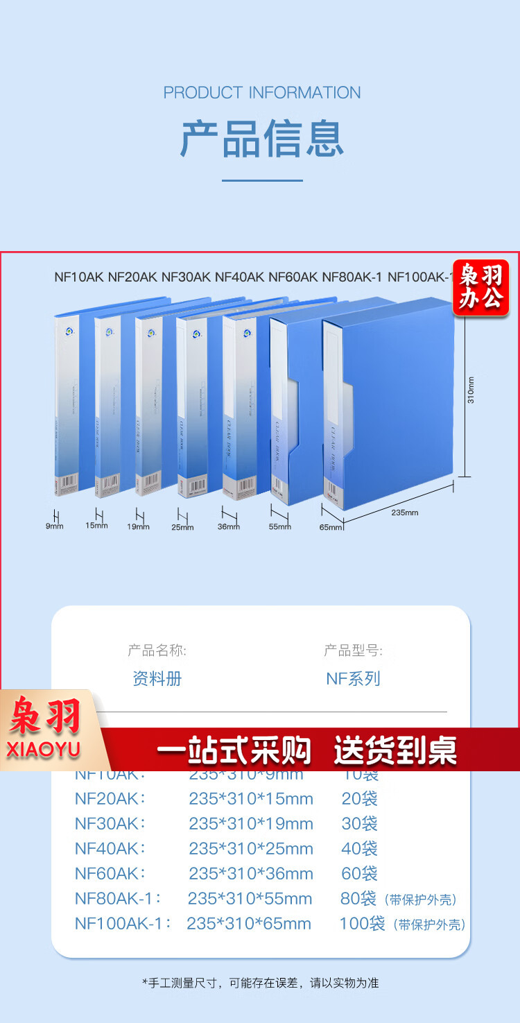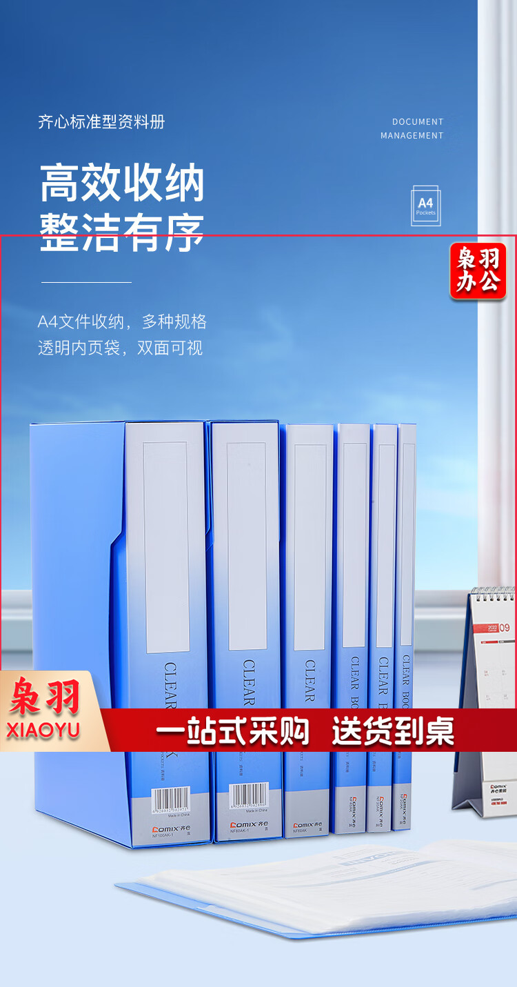 齐心(Comix) A4/80页资料册文件活页收纳册插袋档案文件夹学生试卷科目收纳袋文件保护 配外壳 蓝色NF80AK-1