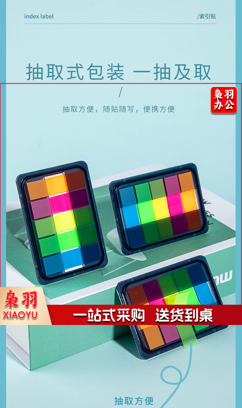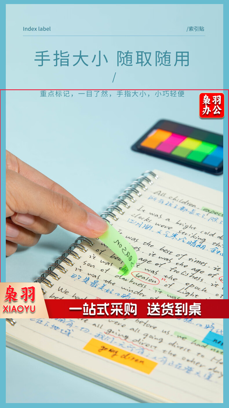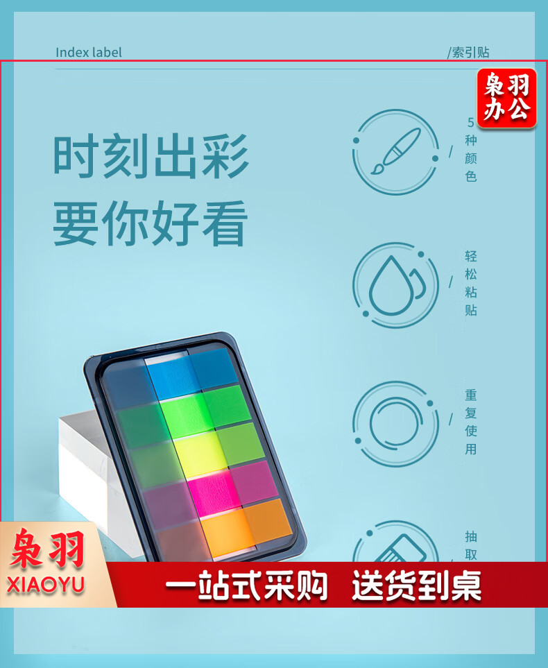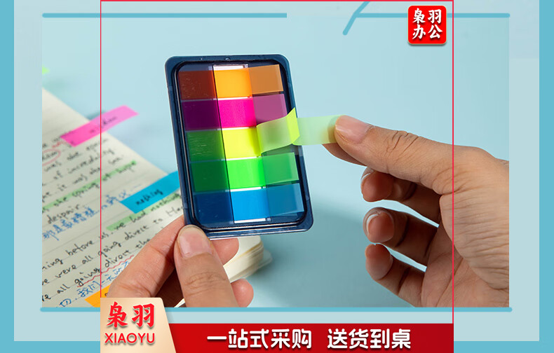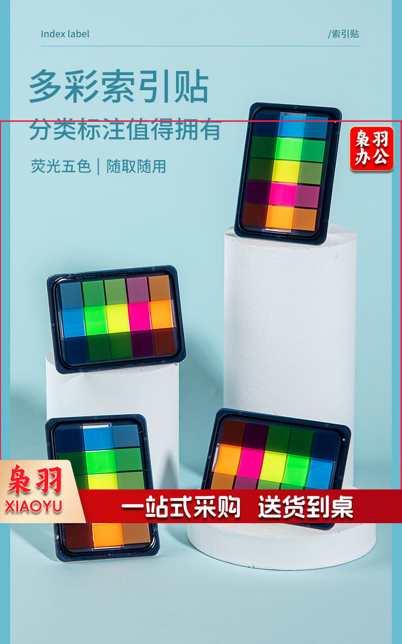 齐心(Comix)300张荧光膜索引标签指示贴/便签条/便利贴/百事贴(44x12mm)20张*5色 办公文具 D7012EC
