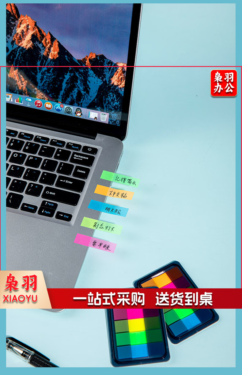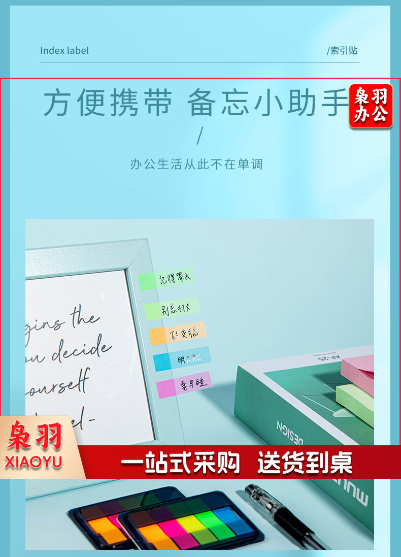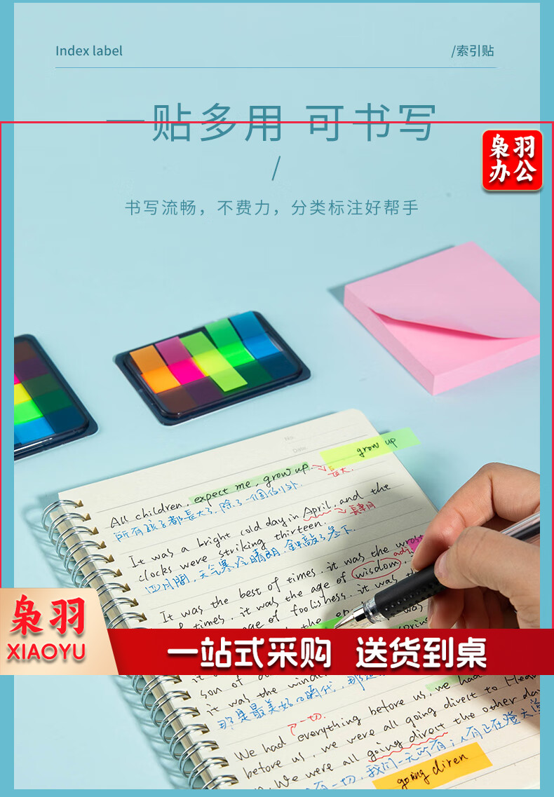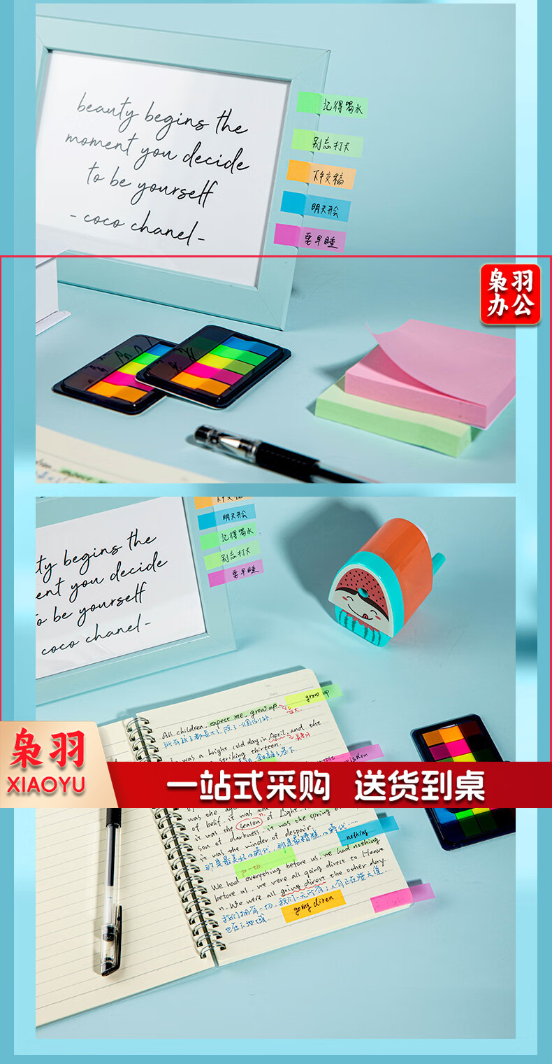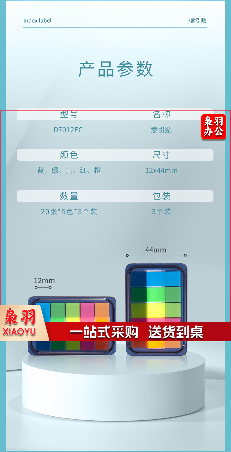 齐心(Comix)300张荧光膜索引标签指示贴/便签条/便利贴/百事贴(44x12mm)20张*5色 办公文具 D7012EC