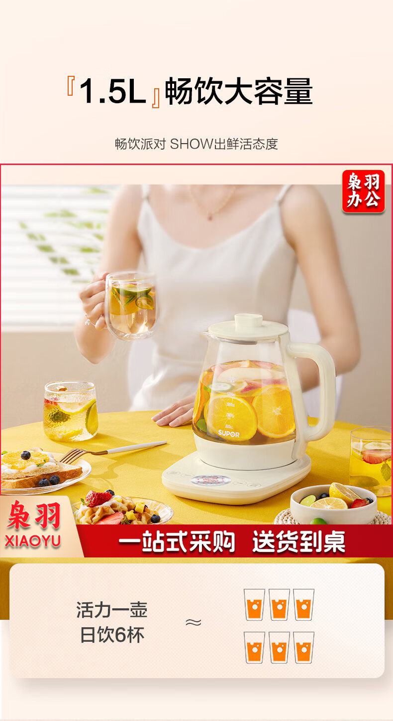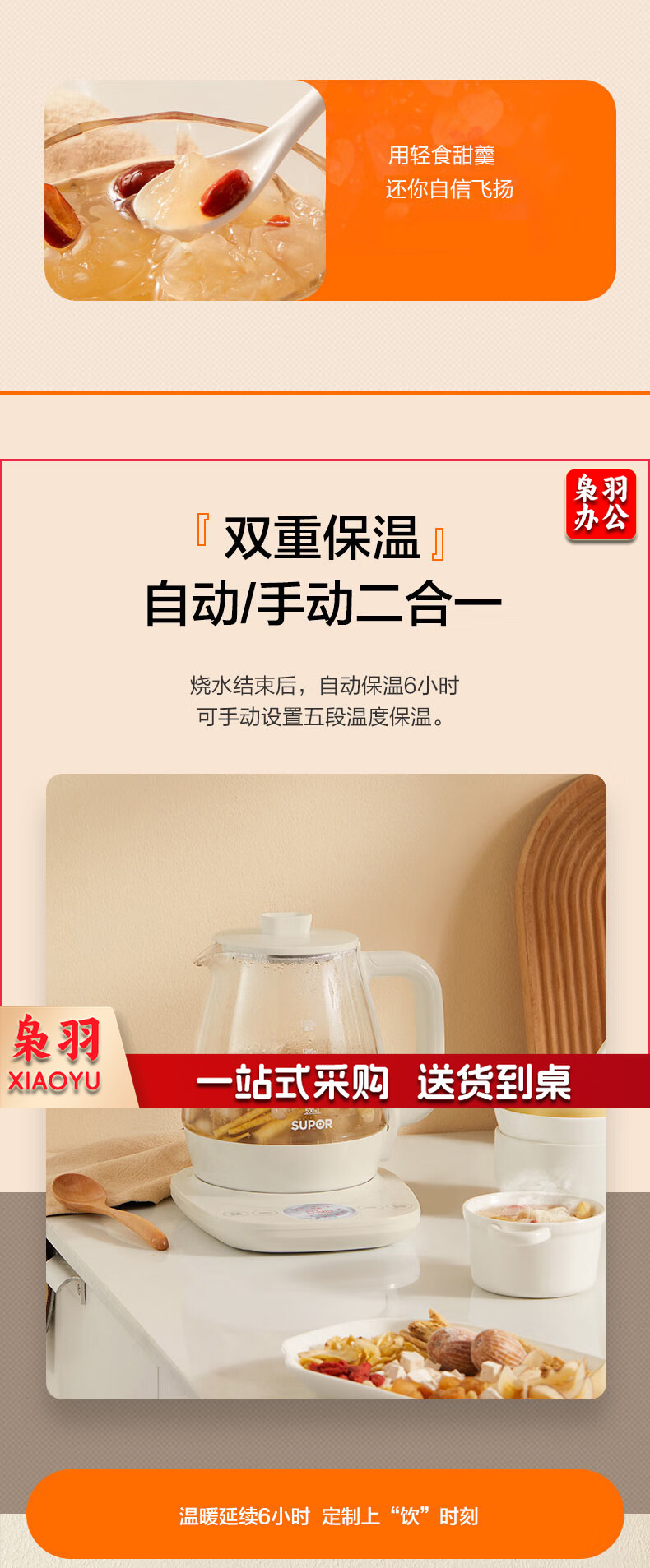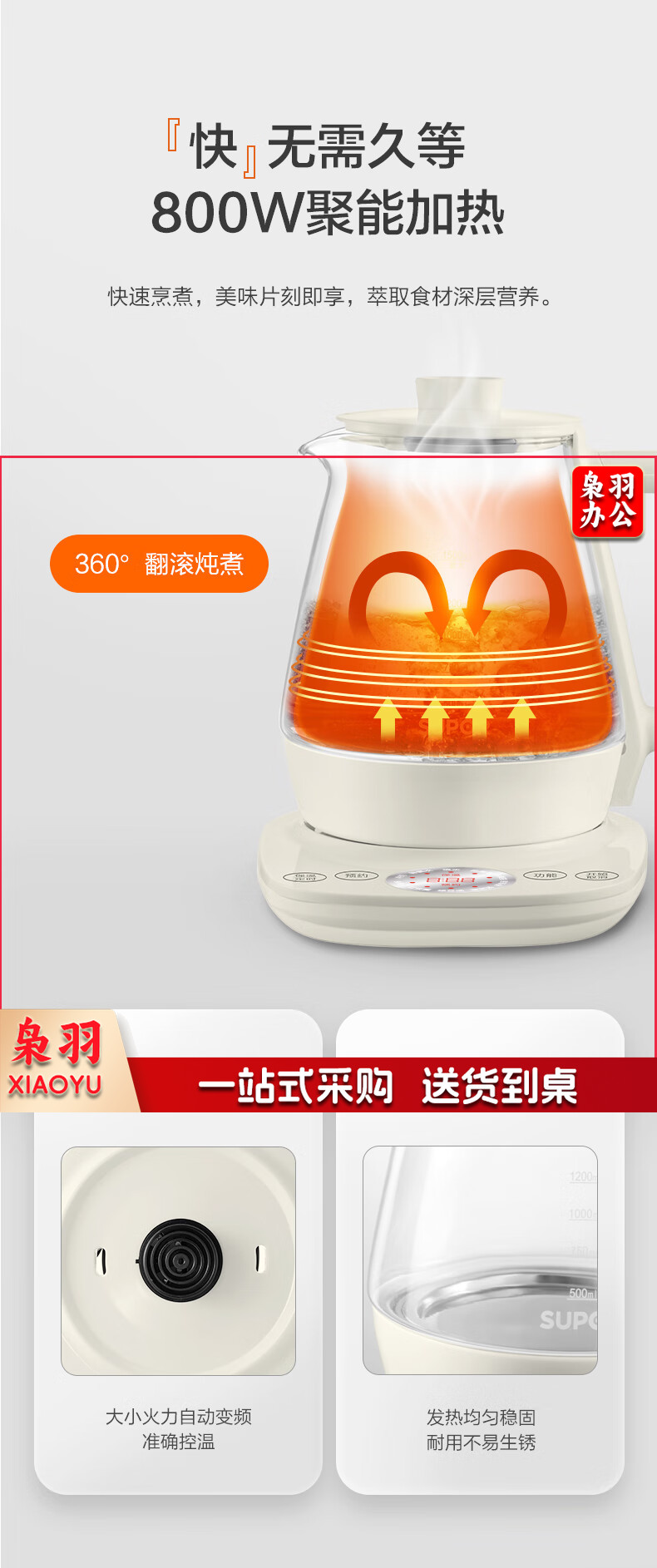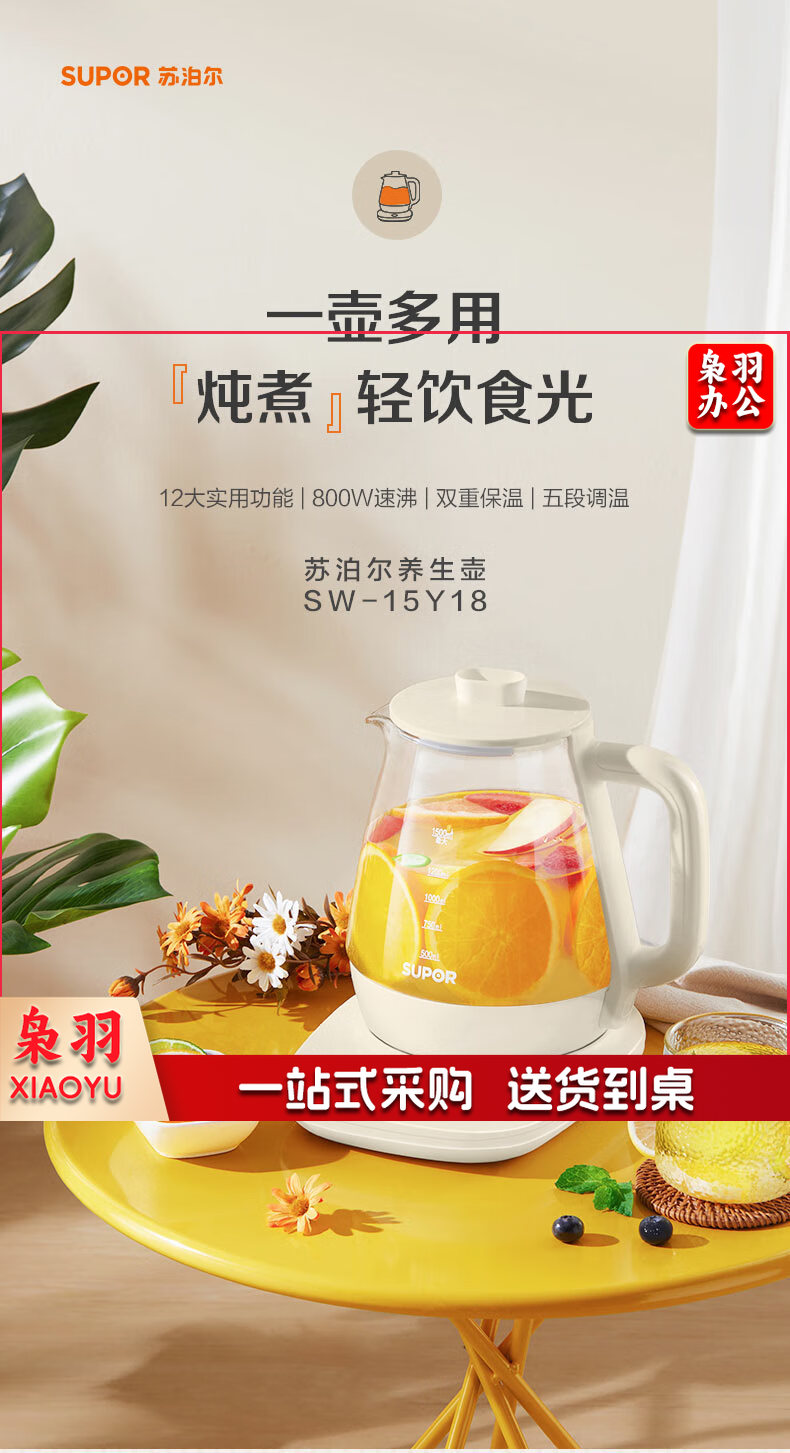 苏泊尔(SUPOR)ZMD安心系列 养生壶 电水壶 迷你燕窝 炖盅养生锅 多功能煮茶壶 1.5L容量 SW-15Y18