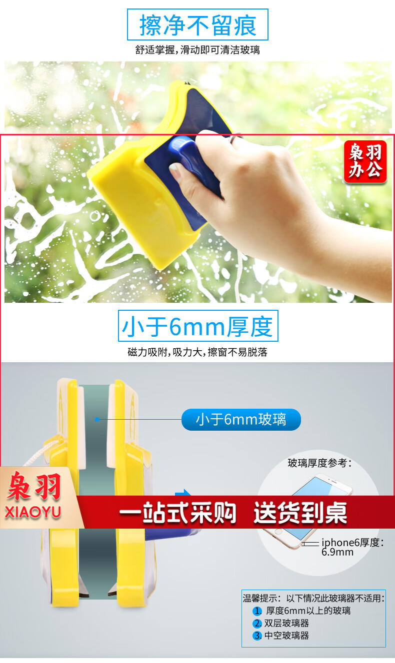 美丽雅双面玻璃器哥俩好方形玻璃刮擦窗器玻璃擦 黄色6毫米