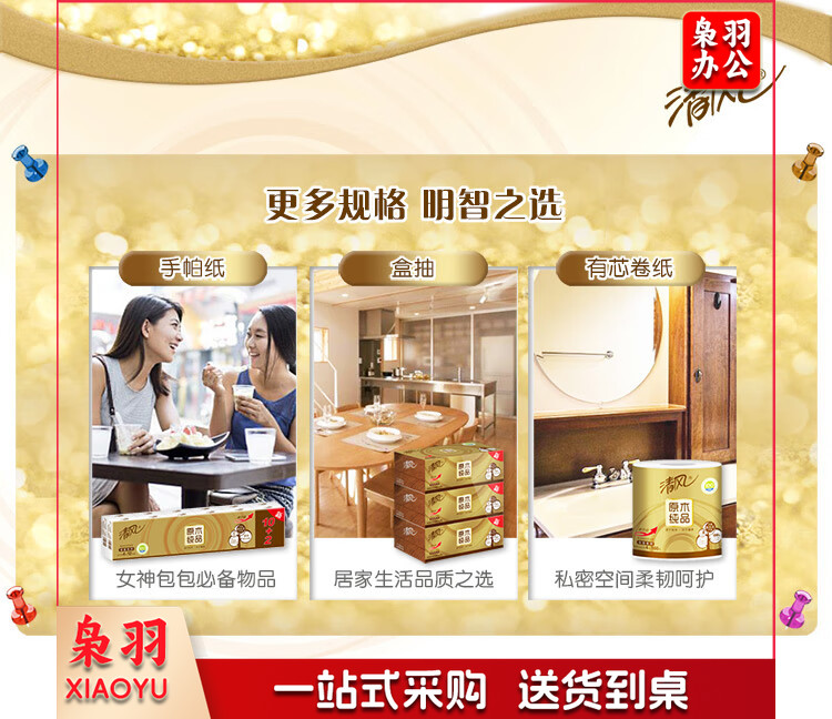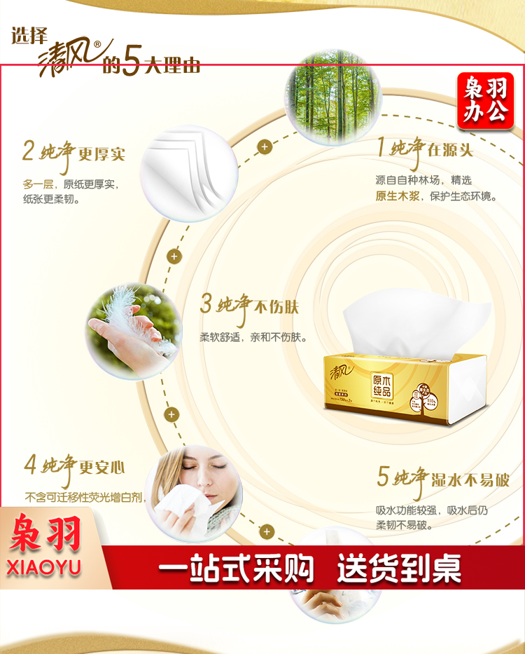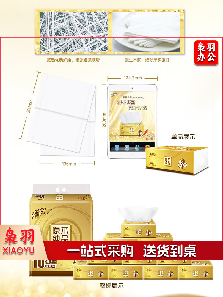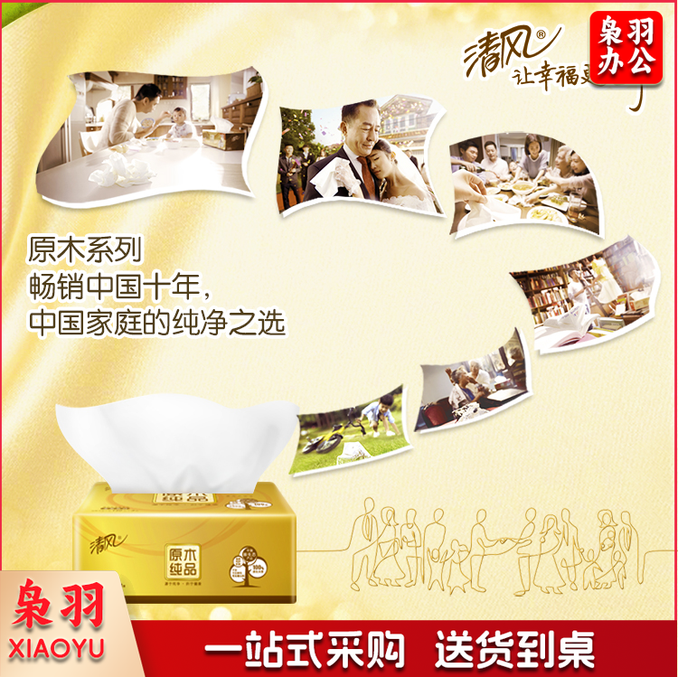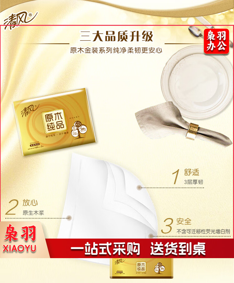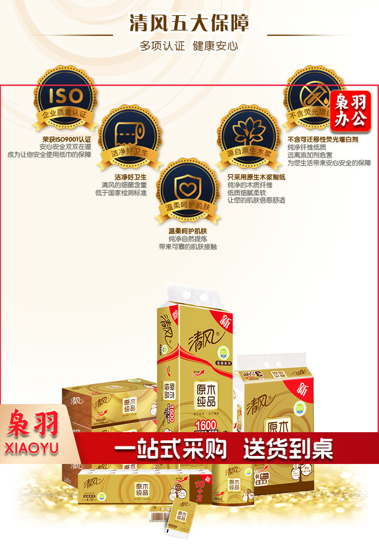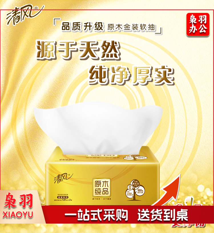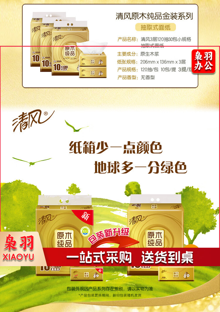 清风(APP)抽纸 原木纯品金装系列 3层120抽纸巾*24包+6包享30包
