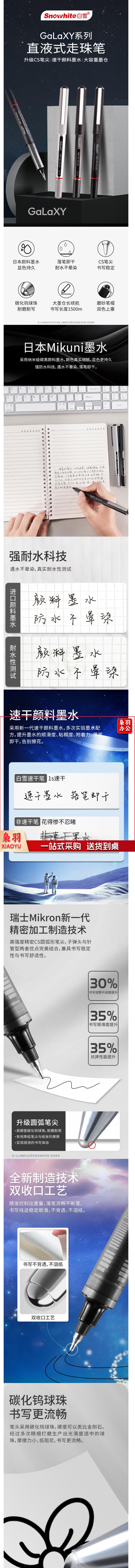 白雪 PVH177 防水直液笔速干签字笔直液式走珠笔0.5mm 12支/盒