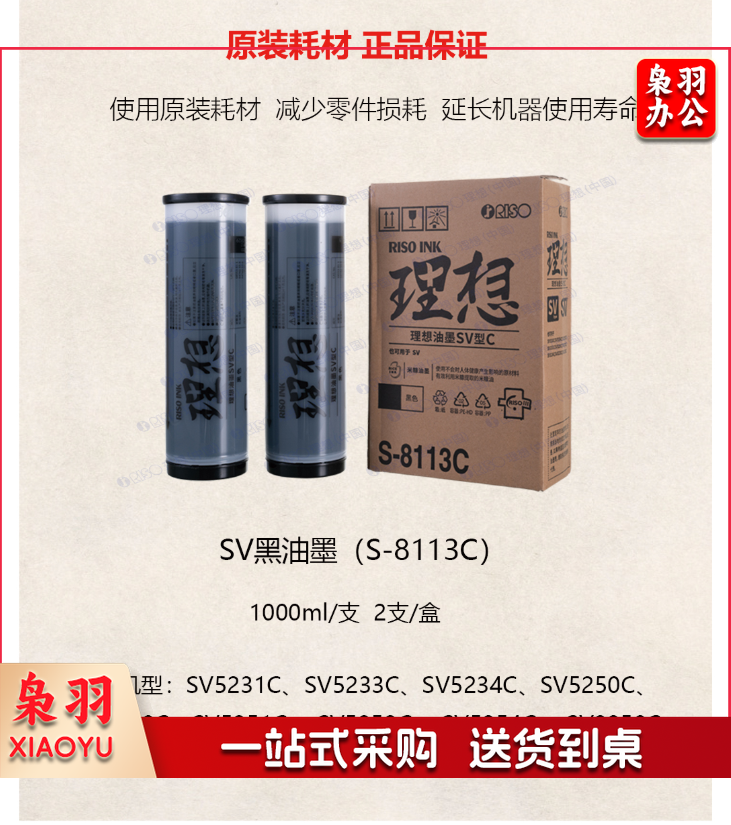 理想 RISO SV黑油墨(S-8113C)适用于:SV全系列机型(除租赁机 )一支装 每盒2支