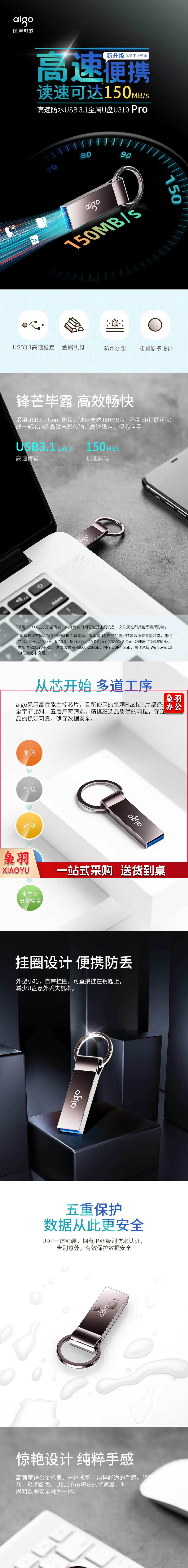 爱国者 64GB USB3.0 高速读写U盘 U310 金属U盘