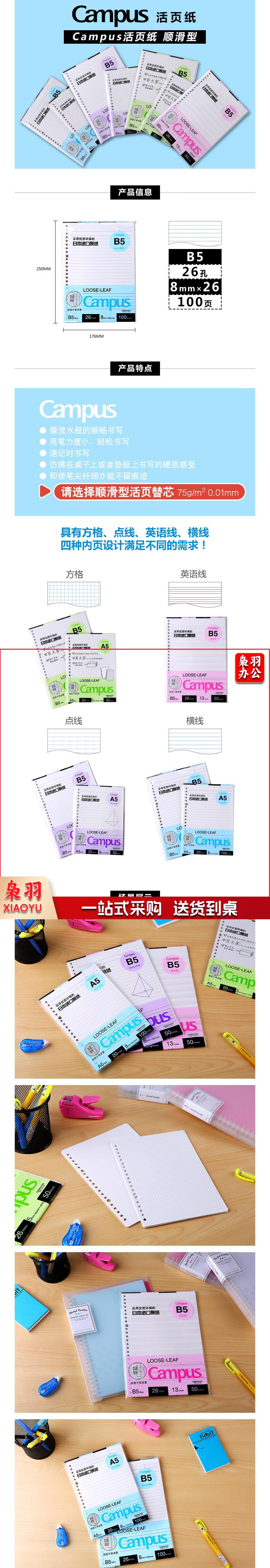 国誉 B5活页纸 活页本替芯 8mm横线26行 100张1本 WCN-CLL1110 货号:JC