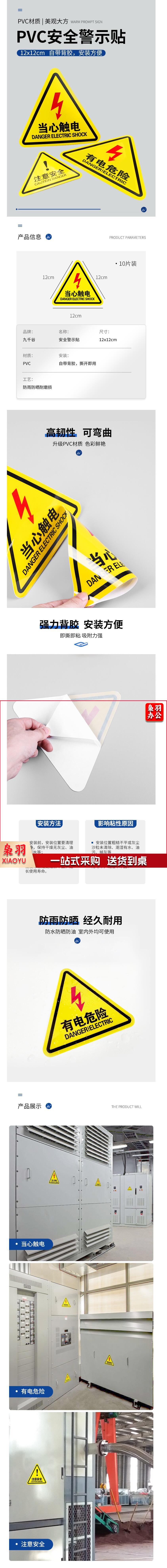安全提示标识牌警示牌 有电危险标识贴纸 12*12CM 10张/包