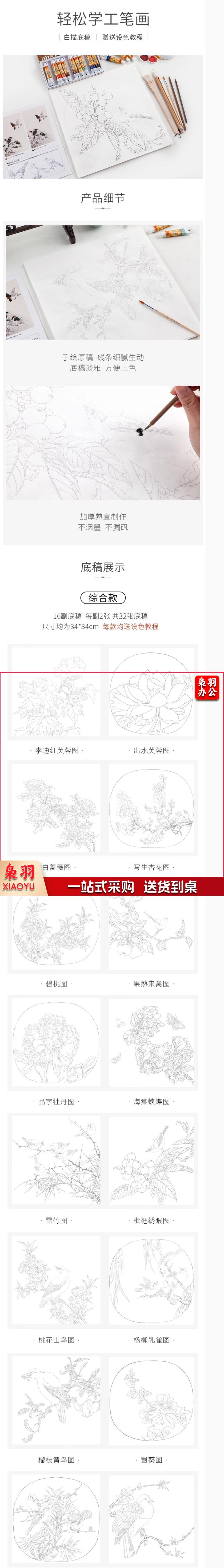 工笔画底稿白描花鸟 综合款底稿32张 货号:JC