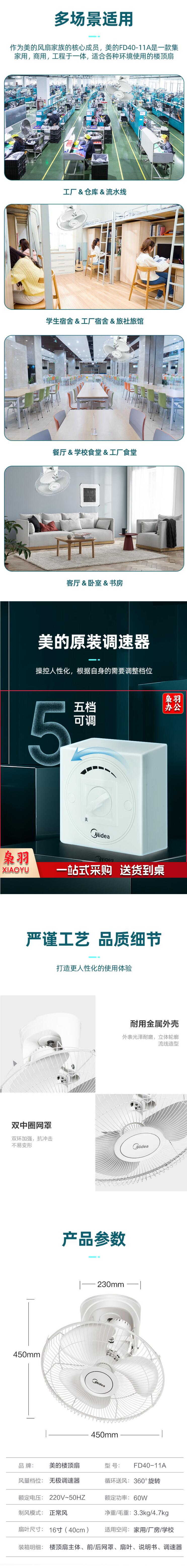 美的 FD40-11A 楼顶扇 吸顶扇 学校宿舍电扇 摇头吊顶扇