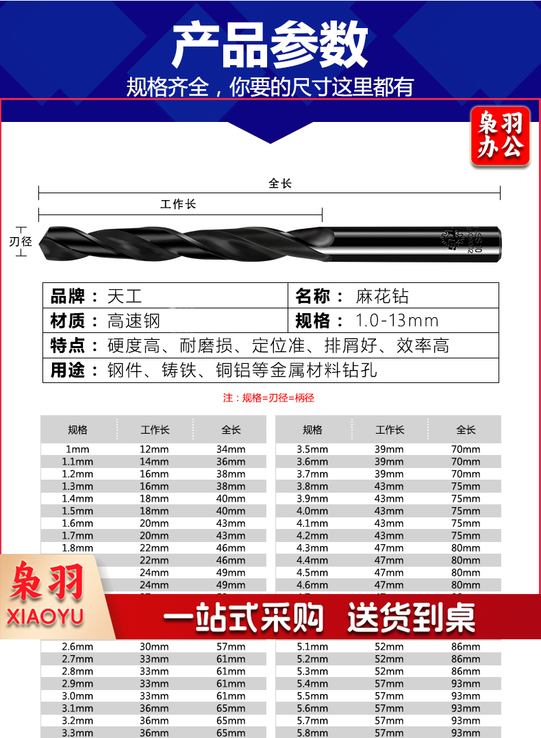 天工(TG)4.2mm 直钻/直柄麻花钻头/手电钻钻头