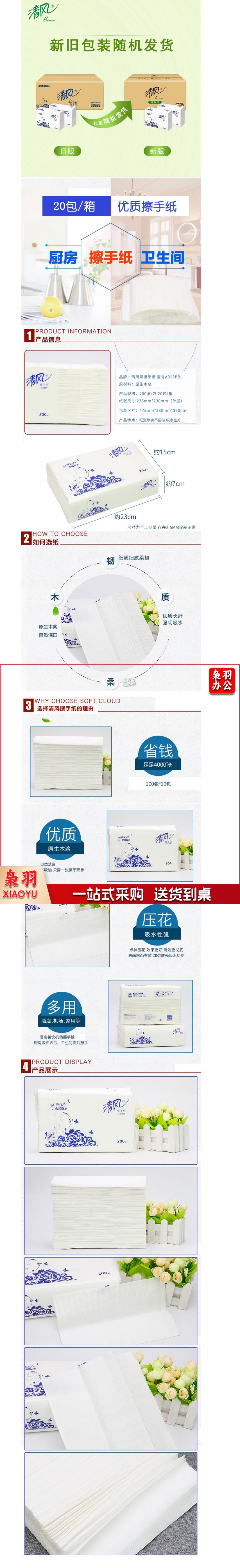 清风 擦手纸200抽20包3折抽 干手纸巾 A913BBL 货号:JC