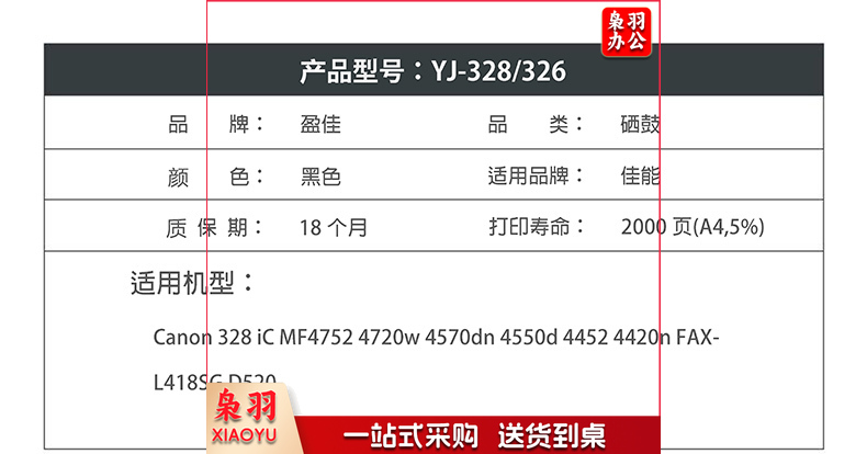 盈佳 CRG328/326碳粉(带芯片)Canon 328 iC MF4752 4720w 4570dn 4550d 4452 4420n FAX-L418SG D520