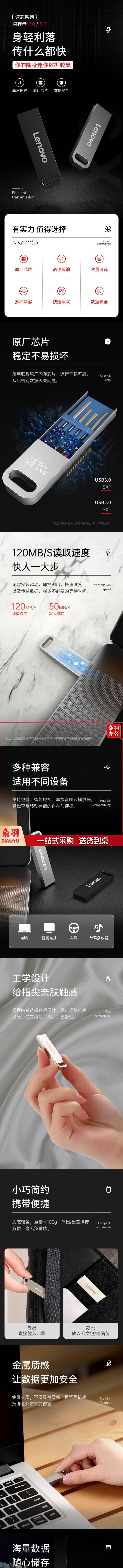 联想 U盘64G 3.0速芯 U盘闪存SX1系列 银色