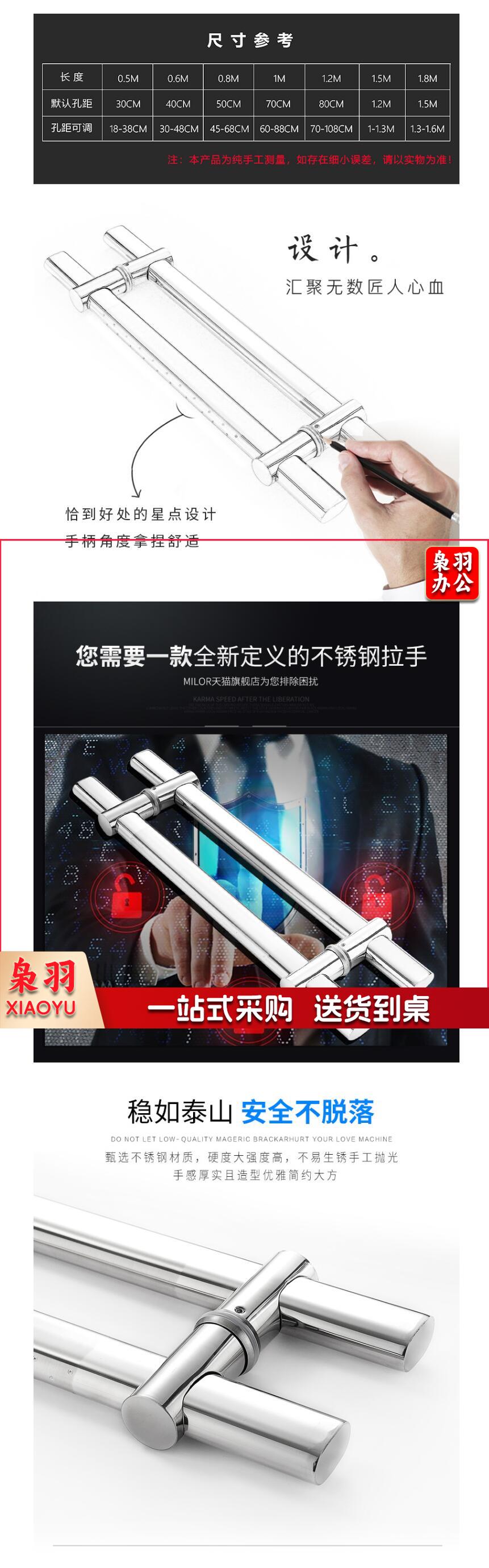 玻璃门拉手 钢化玻璃门把手 可调节孔距 管长60cm 孔距40cm 货号:JC