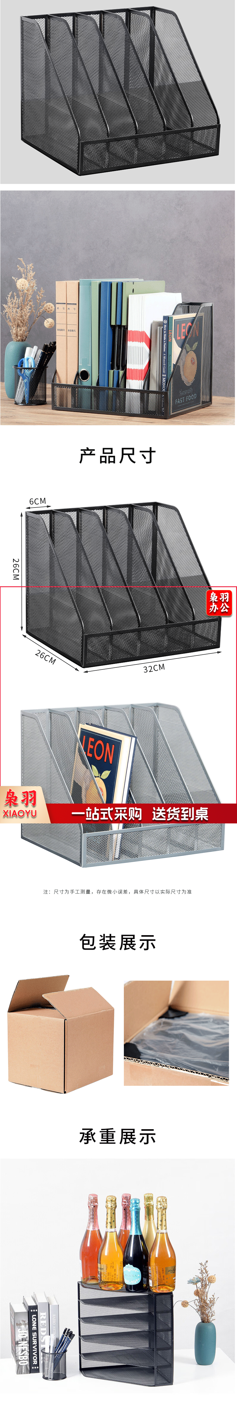 五联镂空金属文件筐 文件栏 资料文件框 五联黑色 货号:WY