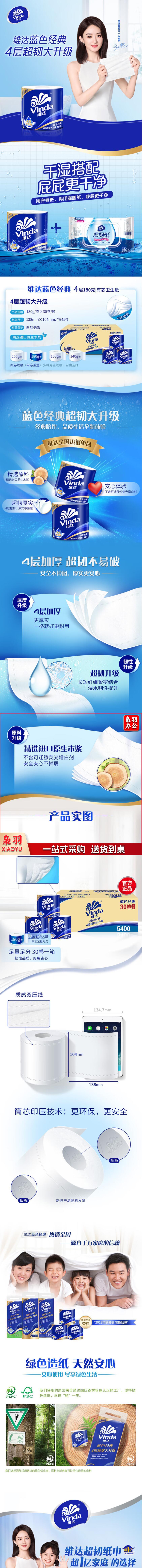维达卷纸 蓝色经典180克 4层卫生纸卷筒纸V4028-D 30卷