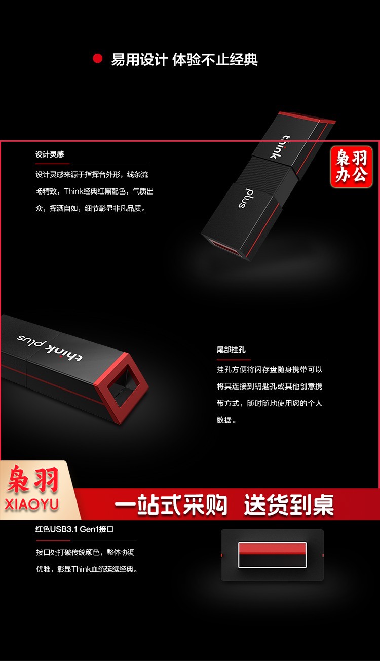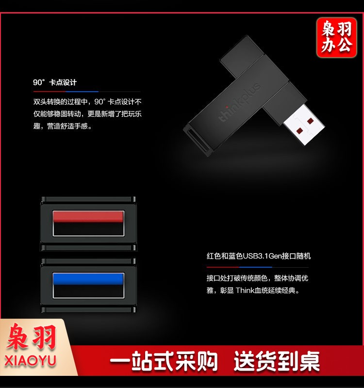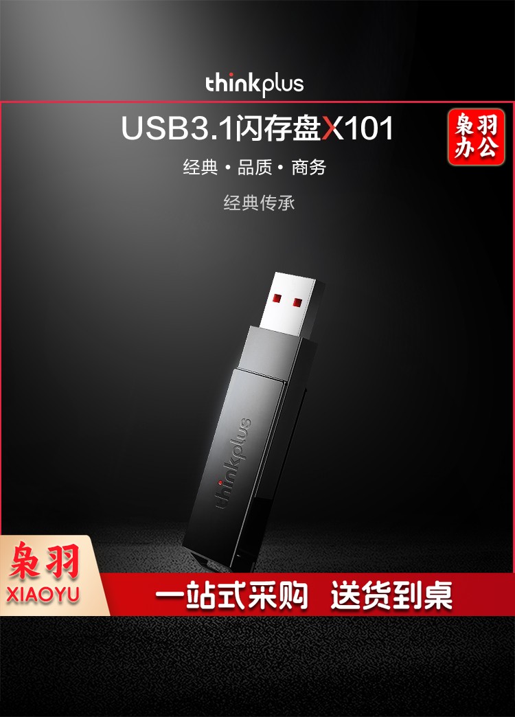 联想(thinkplus)USB3.1高速大容量移动U盘存储闪存U盘 旋转金属款X101 64G