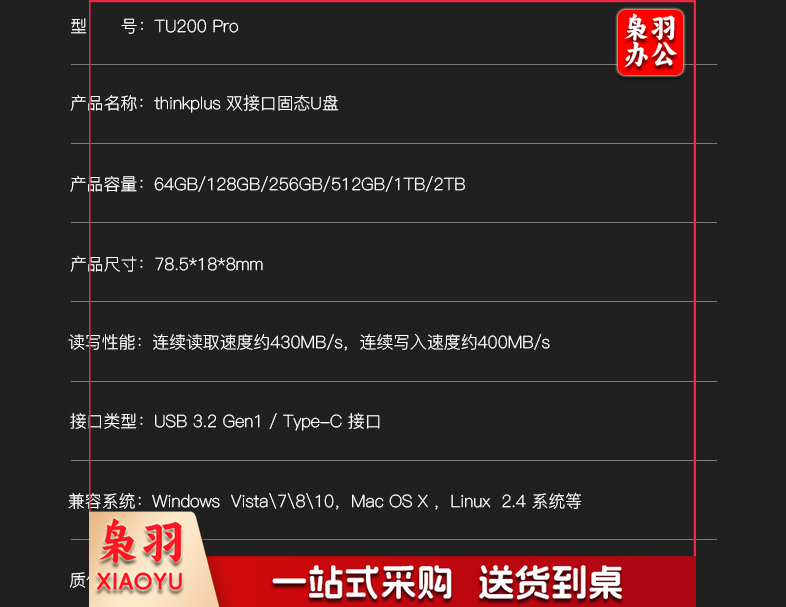 联想thinkplus双接口固态u盘 高达430MB/S usb/type-c手机高速大容量办公优盘 双接口固态U盘【1TB】