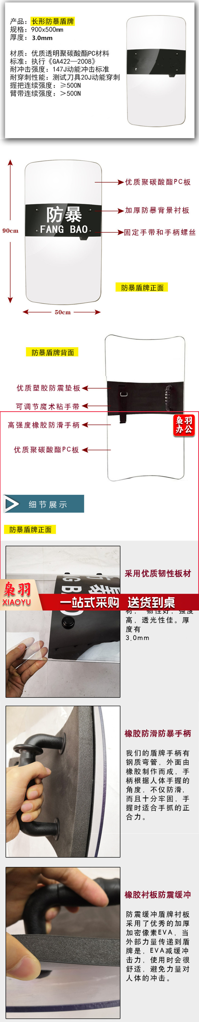 PC防爆盾牌防暴盾牌手持盾牌校园安保器材900*500mm