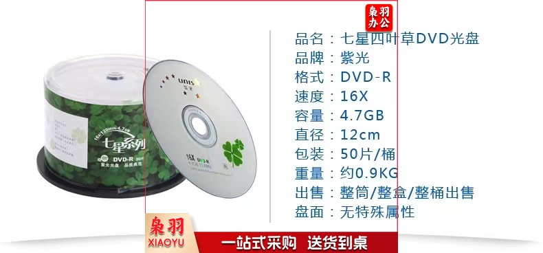 紫光 DVD-R 16速 4.7G 七星四叶草 50片桶装 刻录盘空白光盘