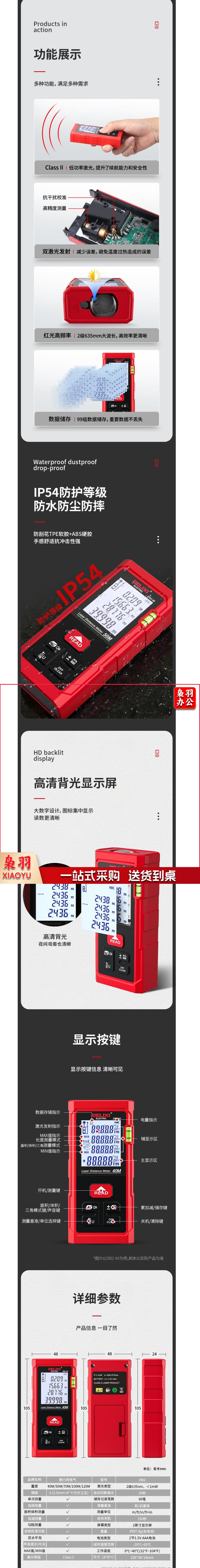 德力西 测距仪 手持式激光量房仪 单水平泡100米 货号:HXE