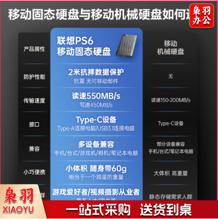 联想(Lenovo)512GB 移动固态硬盘(PSSD)Type-cUSB 3.1 550MB/s高速SSD双接口 手机直连 笔记本 PS6