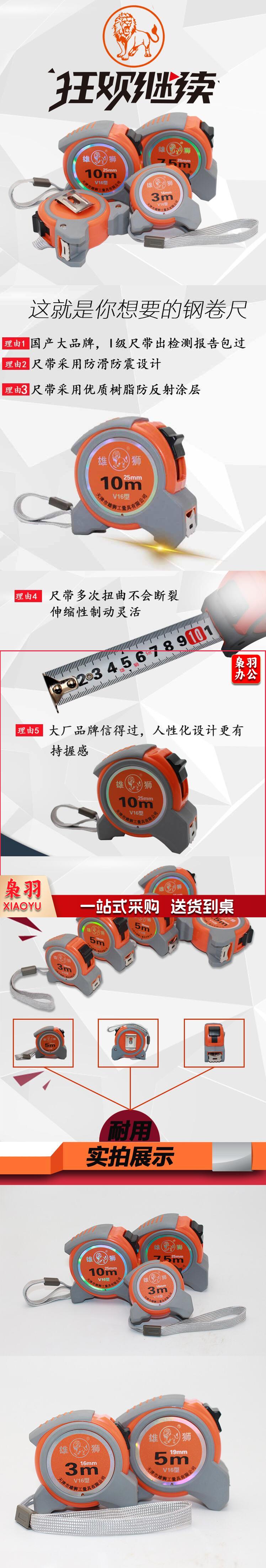 雄狮 10米盒尺(V16型)盒尺钢卷尺公制盒尺尺子