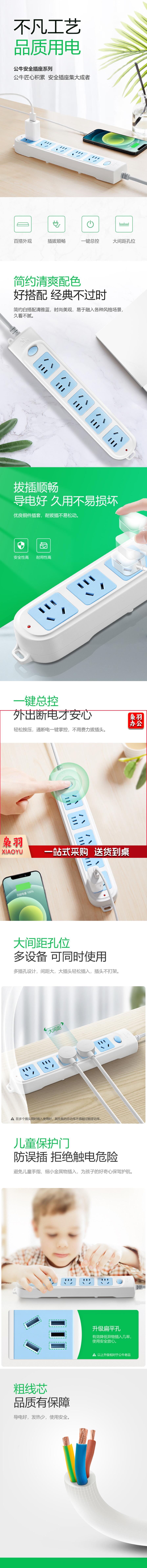 公牛接线板 5位总控全长3米插座插排 GN-602